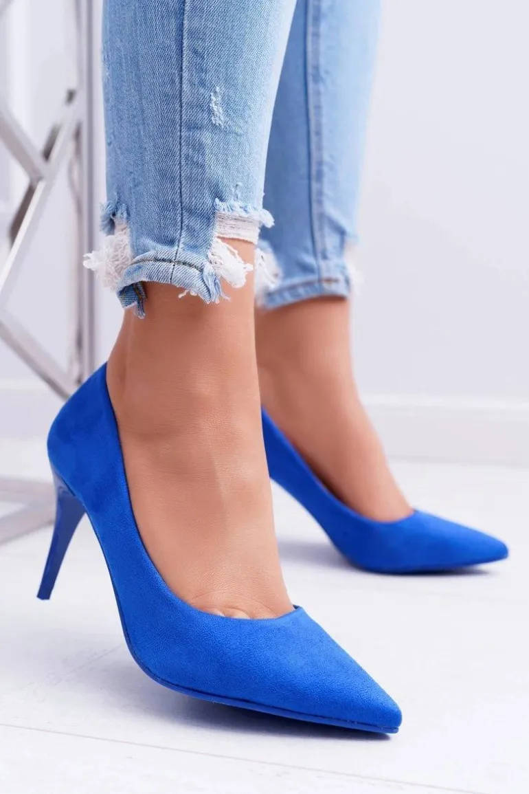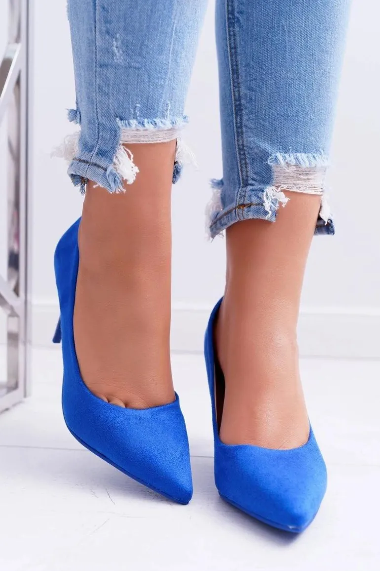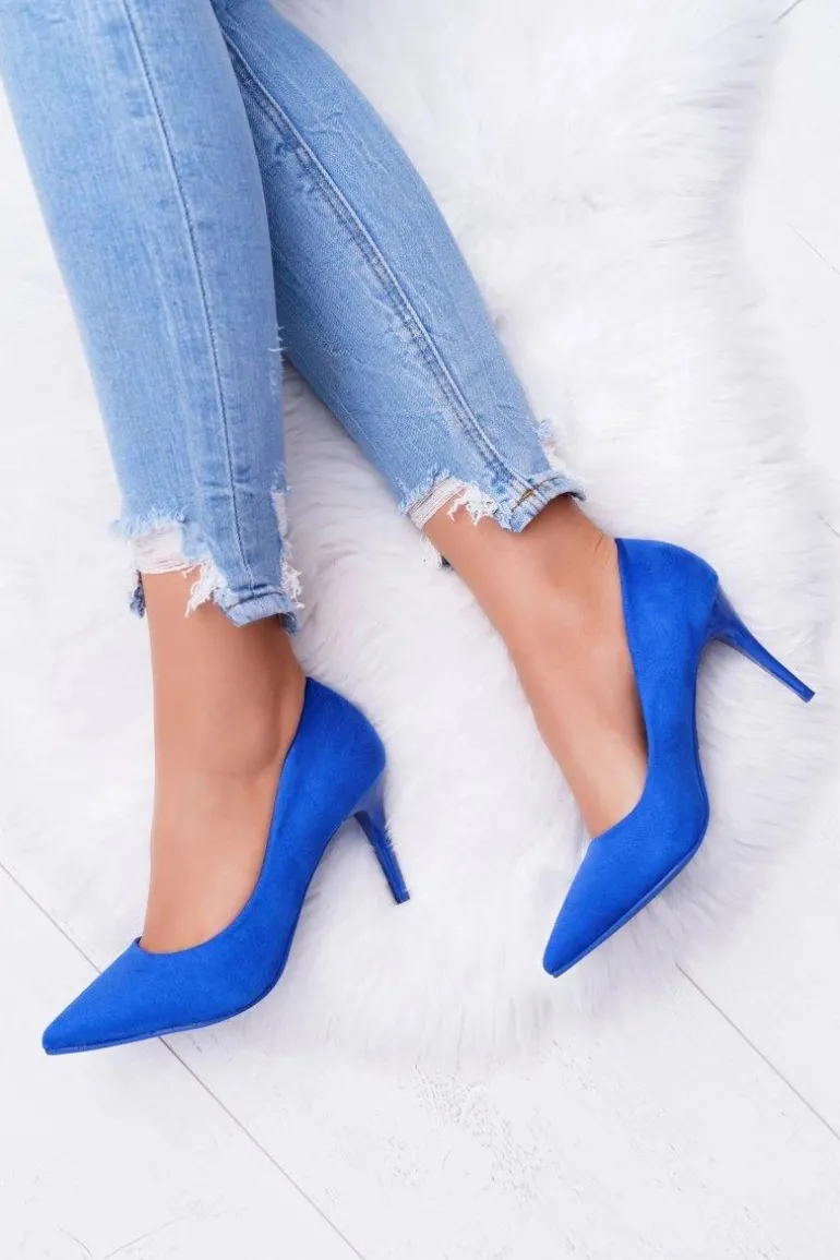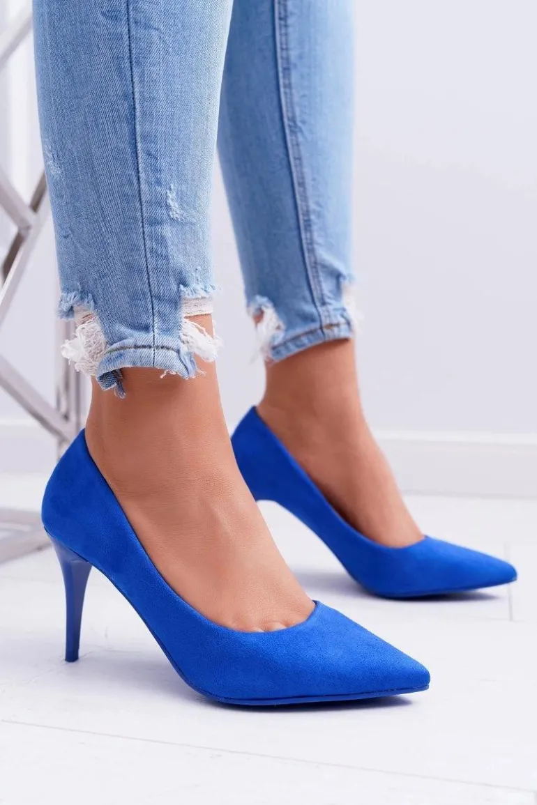 Szpilki Damskie Zamszowe W Szpic Niebieskie Cream