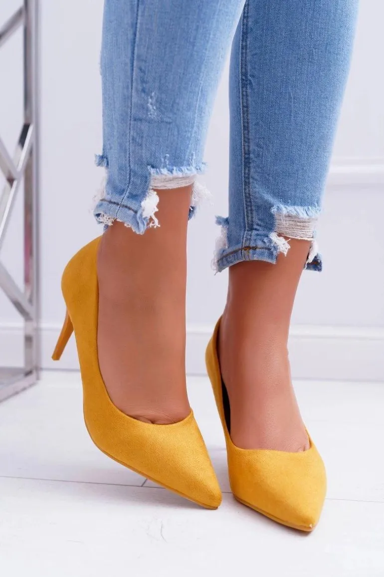 Szpilki Damskie Zamszowe W Szpic Żółte Cream