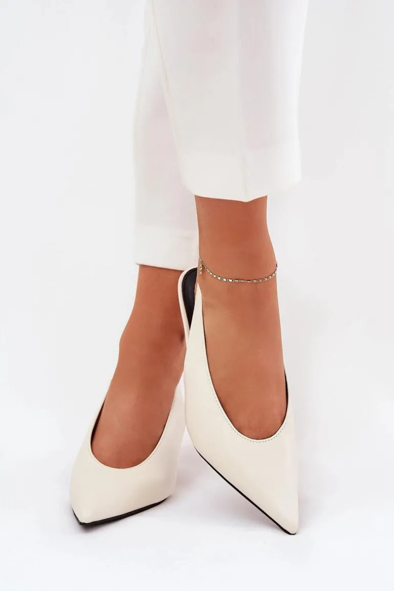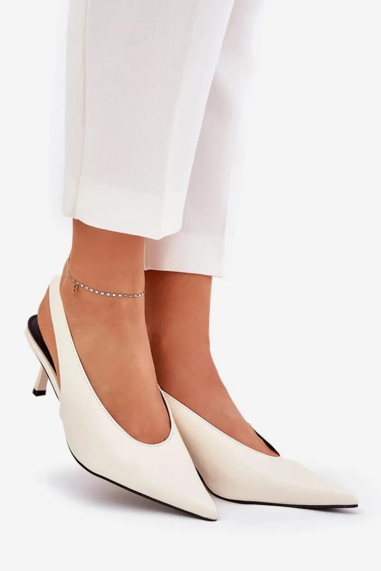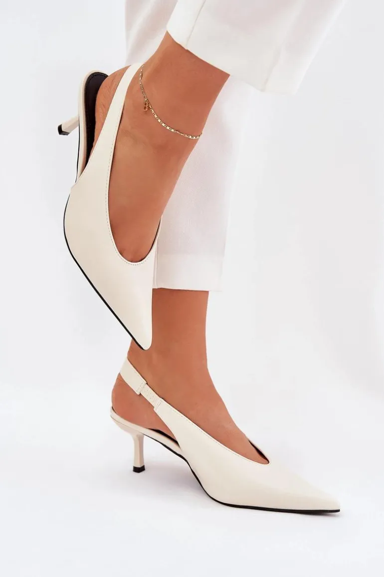 Szpilki wykonane z eko skóry stanowią doskonałą opcję na wyjątkowe wydarzenia i wieczorne spotkania. Ich klasyczne, spiczaste noski dodają elegancji i wizualnie wydłużają nogi. Pasek z gumką umieszczony z tyłu buta zapewnia lepsze dopasowanie do stopy, co przekłada się na wygodę użytkowania. Te szpilki są idealnym dodatkiem do eleganckich sukienek i spodni. Przy wyborze rozmiaru prosimy sugerować się tabelą rozmiarów.