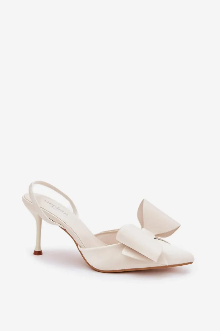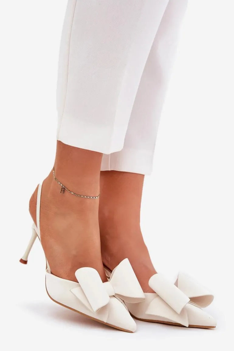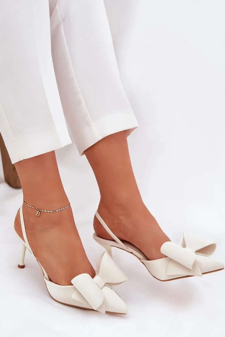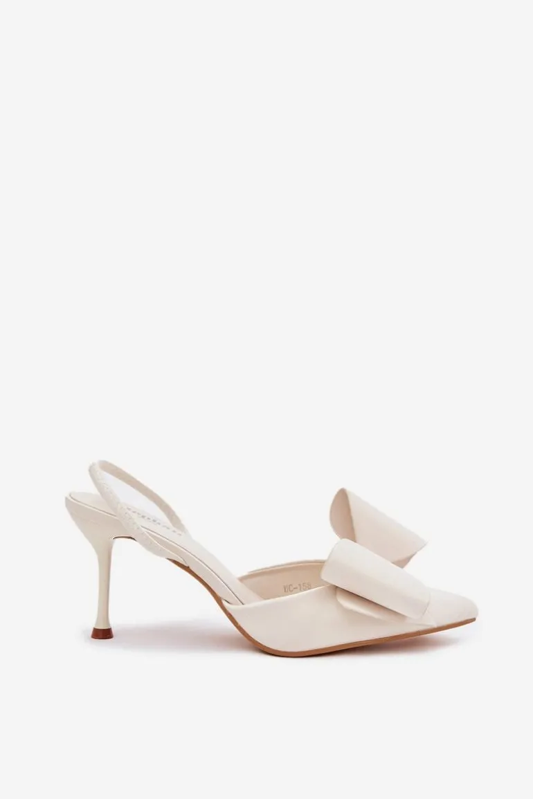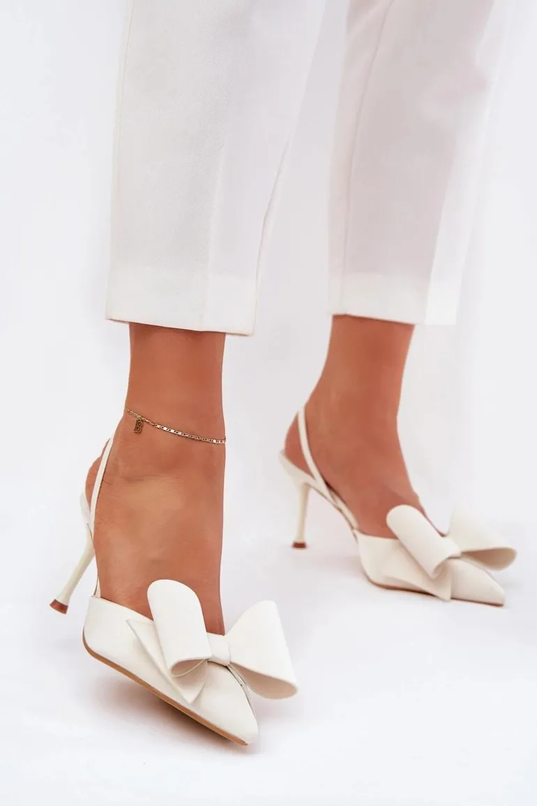 Szpilki Z Odkrytymi Piętami I Kokardką Ecru Eklevia