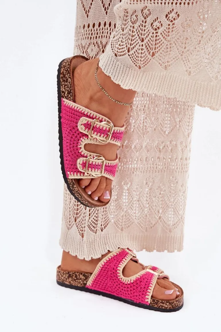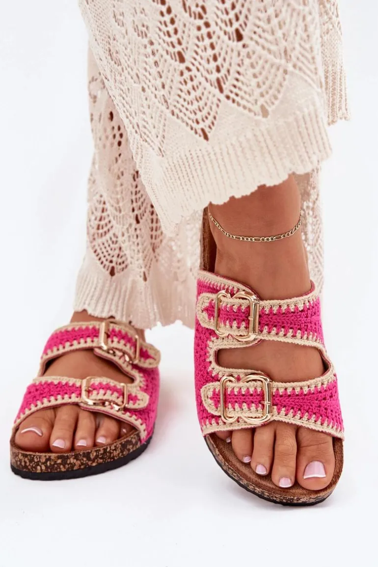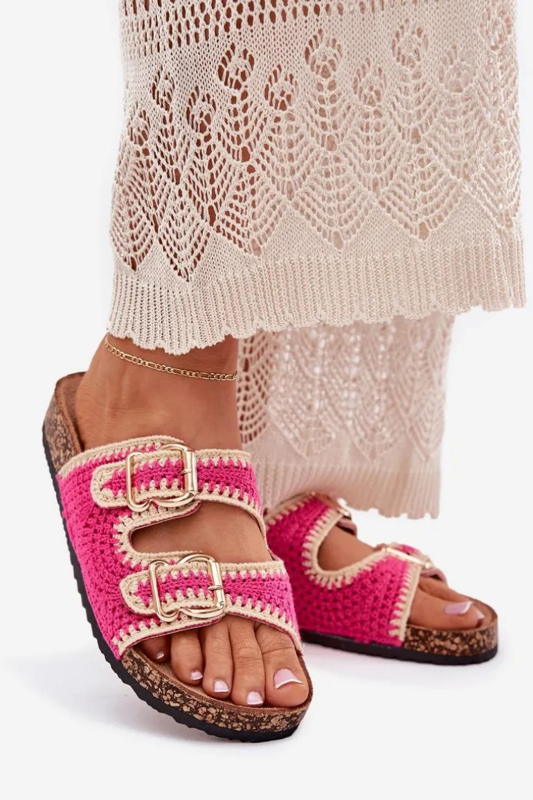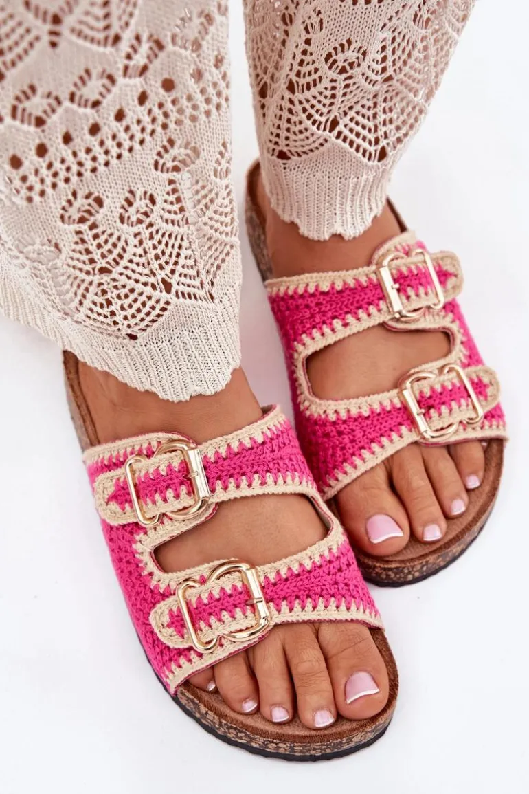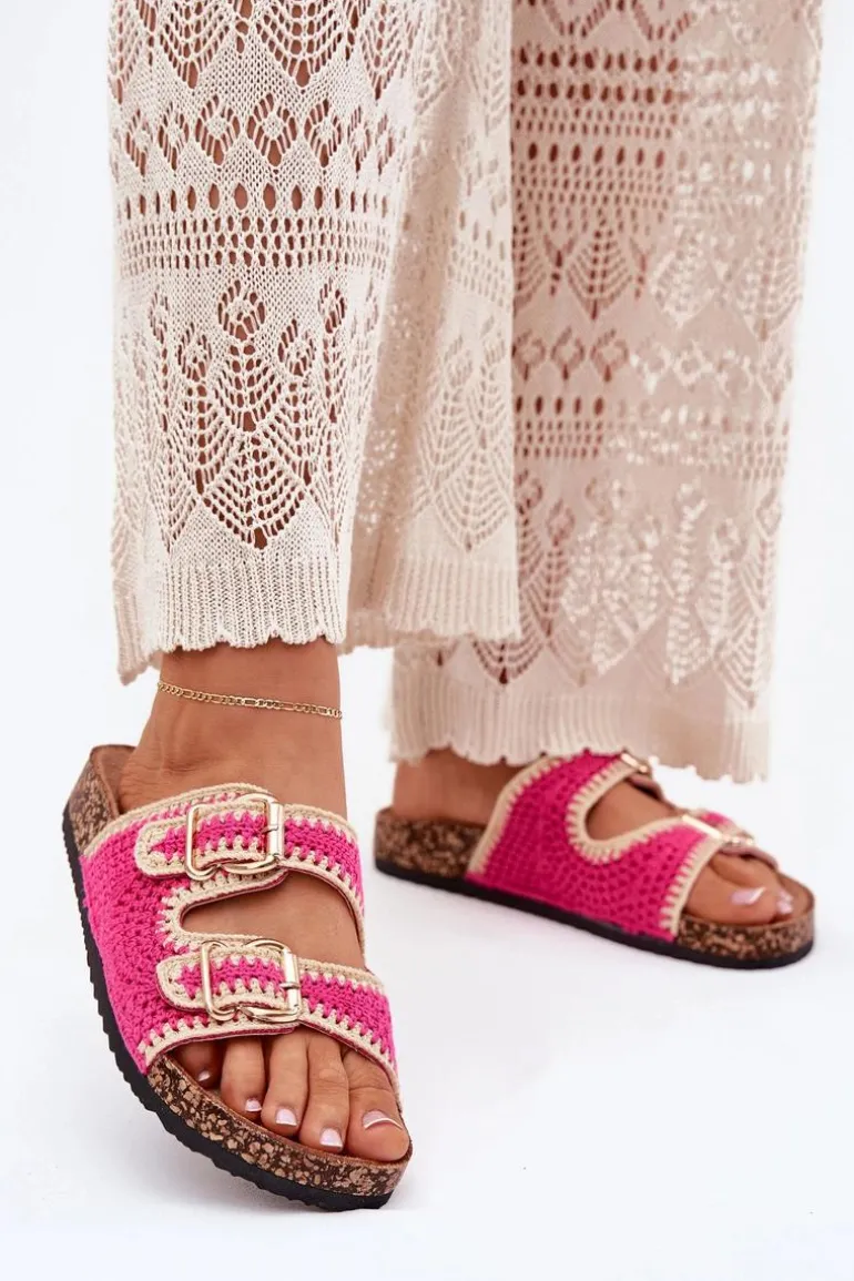 Szydełkowe klapki damskie na korkowej platformie to wyjątkowa propozycja na ciepłe dni. Dzięki profilowanej wkładce z eko zamszu zapewniają komfort i wygodę przez cały dzień. Dwie złote klamry dodają im eleganckiego charakteru. Idealne do letnich stylizacji, te klapki będą doskonałym wyborem do sukienek, spódnic i spodni. Przy wyborze rozmiaru prosimy sugerować się tabelą rozmiarów.