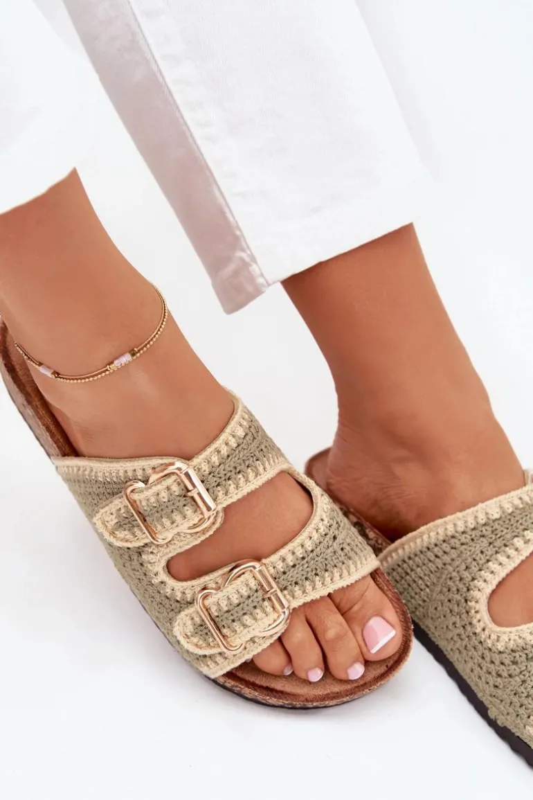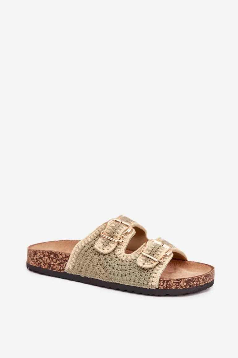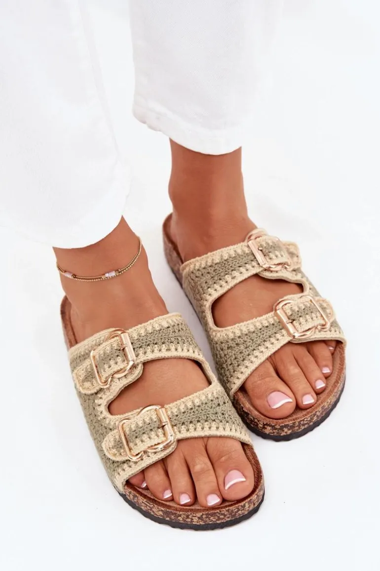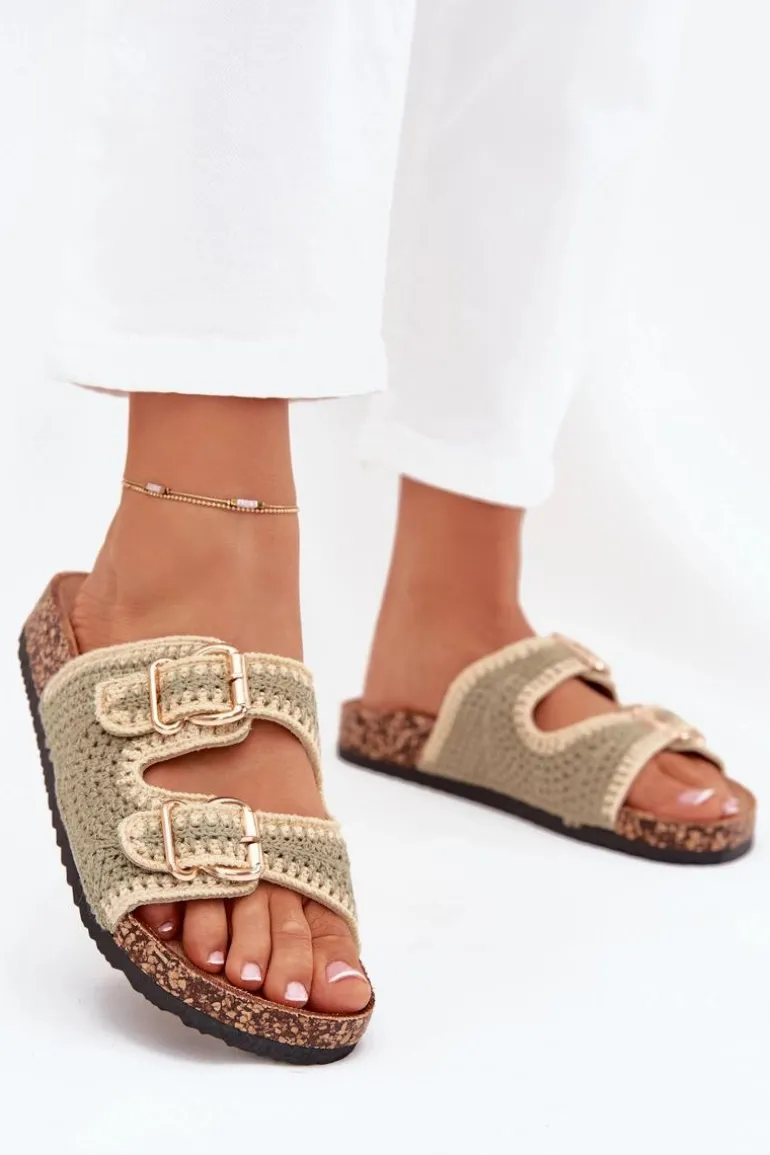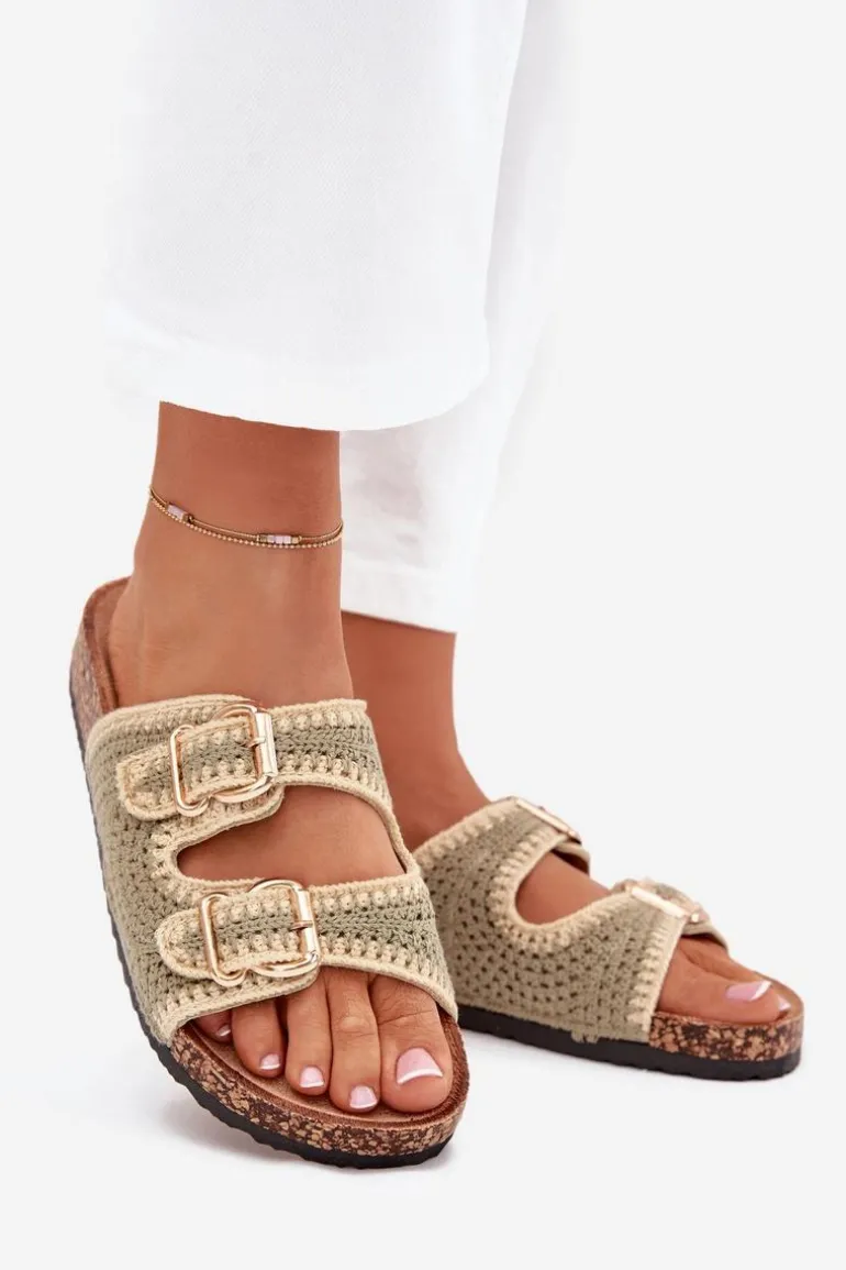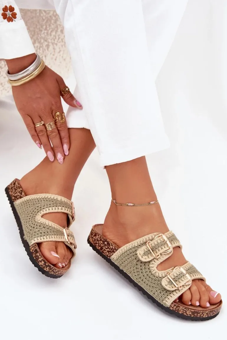 Szydełkowe klapki damskie na korkowej platformie to wyjątkowa propozycja na ciepłe dni. Dzięki profilowanej wkładce z eko zamszu zapewniają komfort i wygodę przez cały dzień. Dwie złote klamry dodają im eleganckiego charakteru. Idealne do letnich stylizacji, te klapki będą doskonałym wyborem do sukienek, spódnic i spodni. Przy wyborze rozmiaru prosimy sugerować się tabelą rozmiarów.
