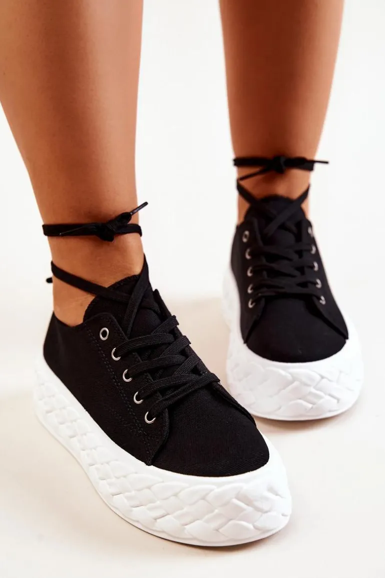 Damskie tenisówki na masywnej platformie pasują do wielu stylizacji. Wykonane z tkaniny. Posiadają materiałową wkładkę. Gumowa platforma jest przyozdobiona pięknym warkoczem. Świetnie sprawdzą się zarówno do spodni jak i spódnic. Wyraź siebie poprzez swój styl i kup te świetne tenisówki już dziś! Przy wyborze rozmiaru prosimy sugerować się tabelą rozmiarów.