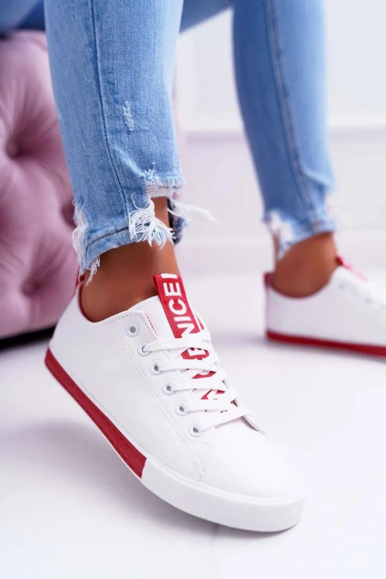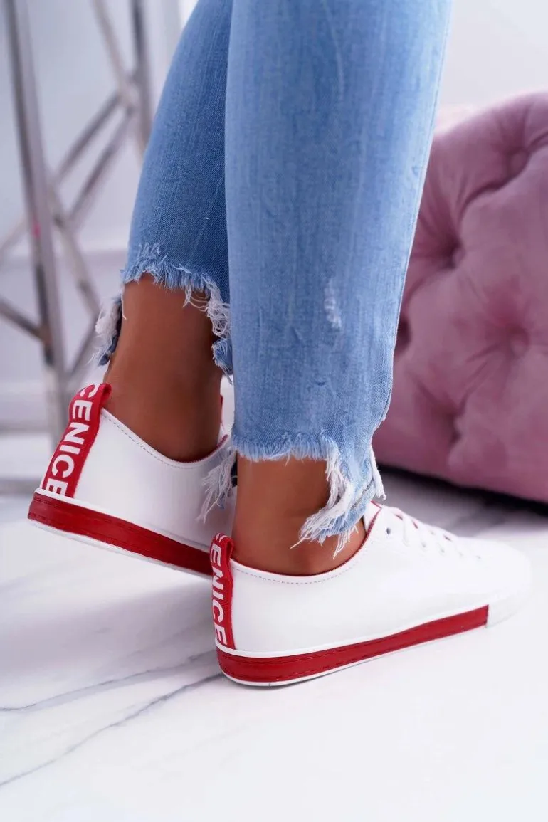 Trampki Damskie Białe Czerwony Pasek Nigrid