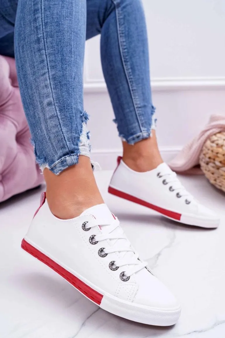 Trampki Damskie Białe Czerwony Pasek Nigrid2