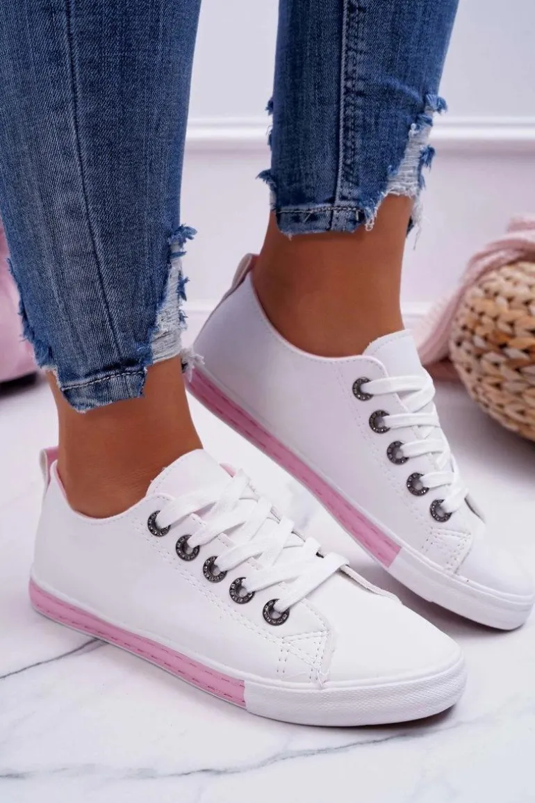 Trampki Damskie Białe Różowy Pasek Nigrid2