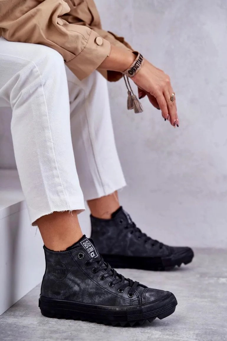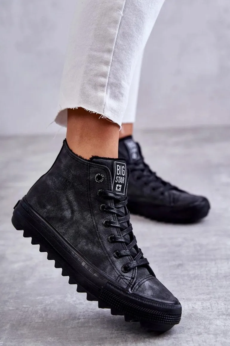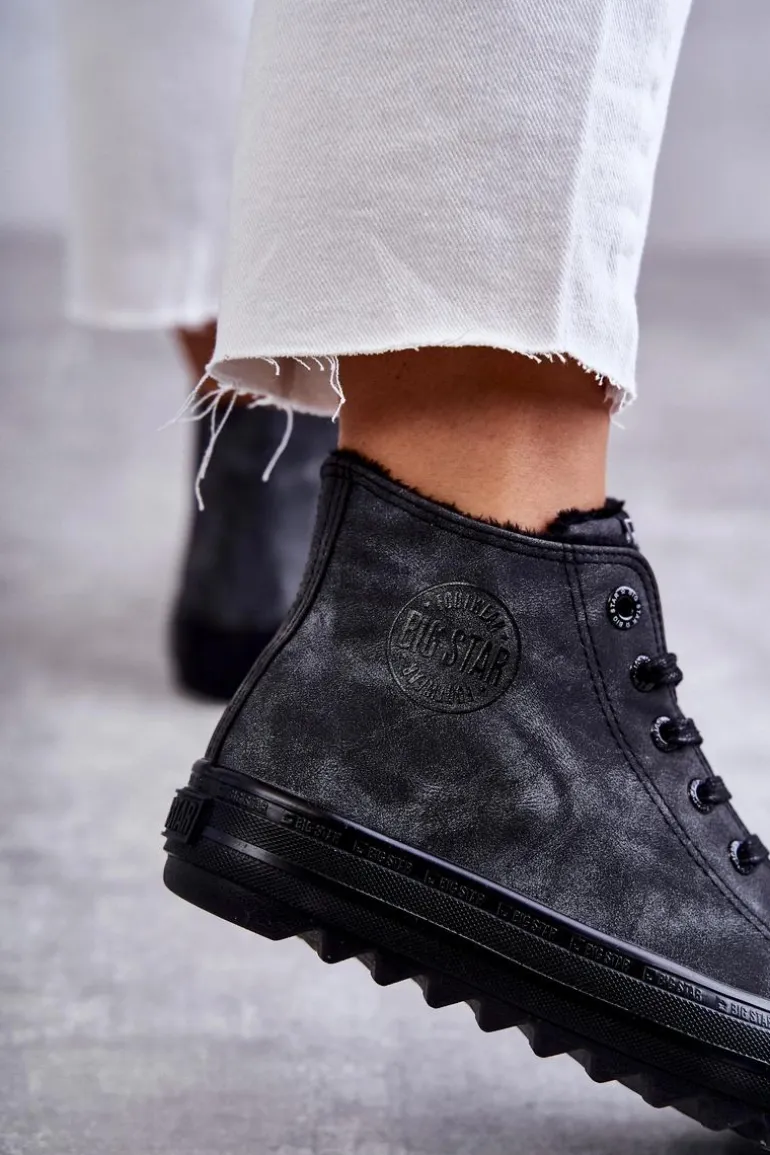Wysokie, ciepłe, ponadczasowe sznurowane trampki BIG STAR! Komfortowe z delikatnym ociepleniem w postaci futerka z krótkim włosiem, które doskonale sprawdzi się w chłodniejsze dni. Antypoślizgowa, solidna podeszwa, to gwarancja bezpieczeństwa. Klasyczny wzór połączony z niespotykaną dotąd wygodą to doskonały przepis na praktyczne i oryginalne buty. Teraz w wersji bez zamka na boku! Przy wyborze rozmiaru prosimy sugerować się tabelą rozmiarów.