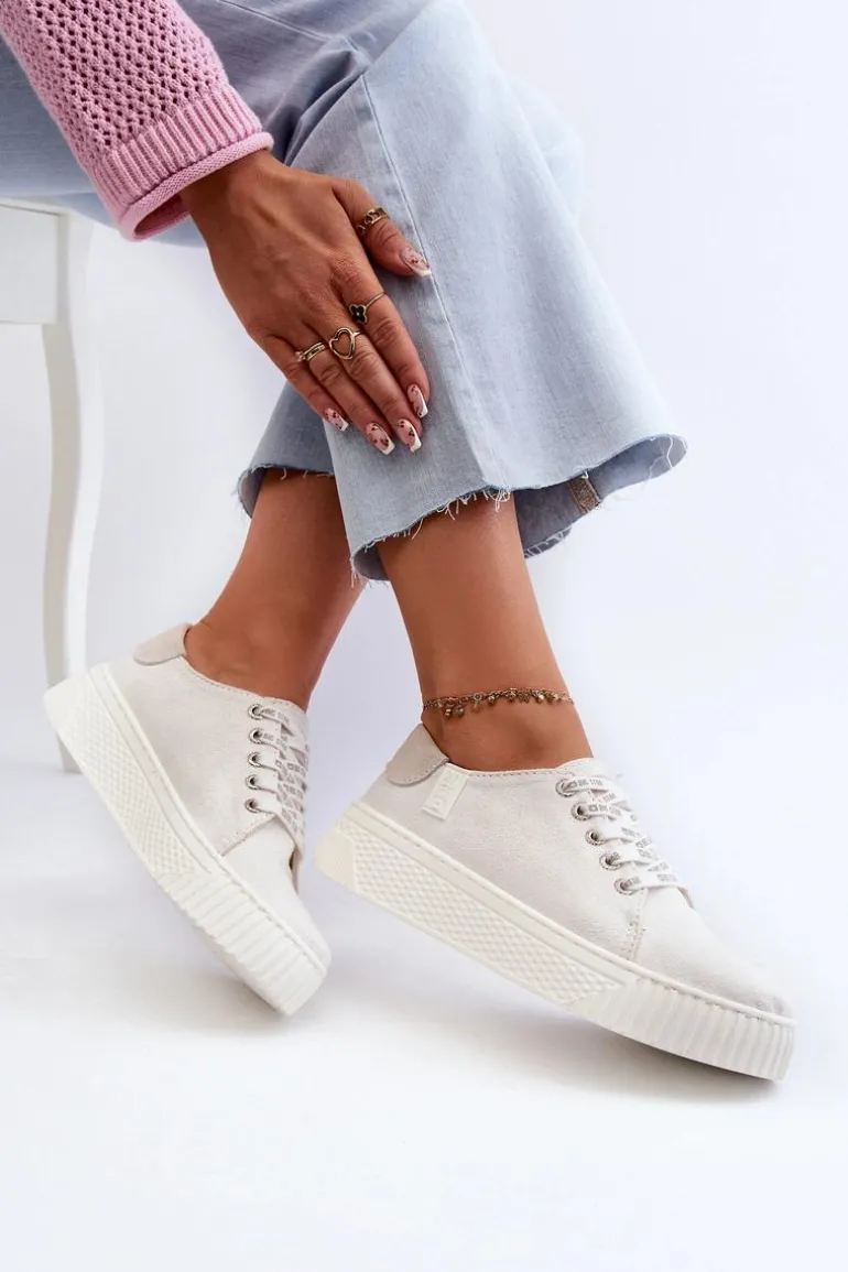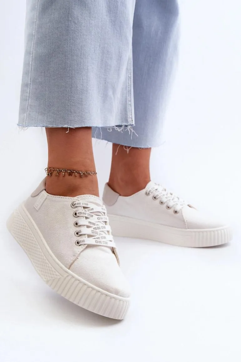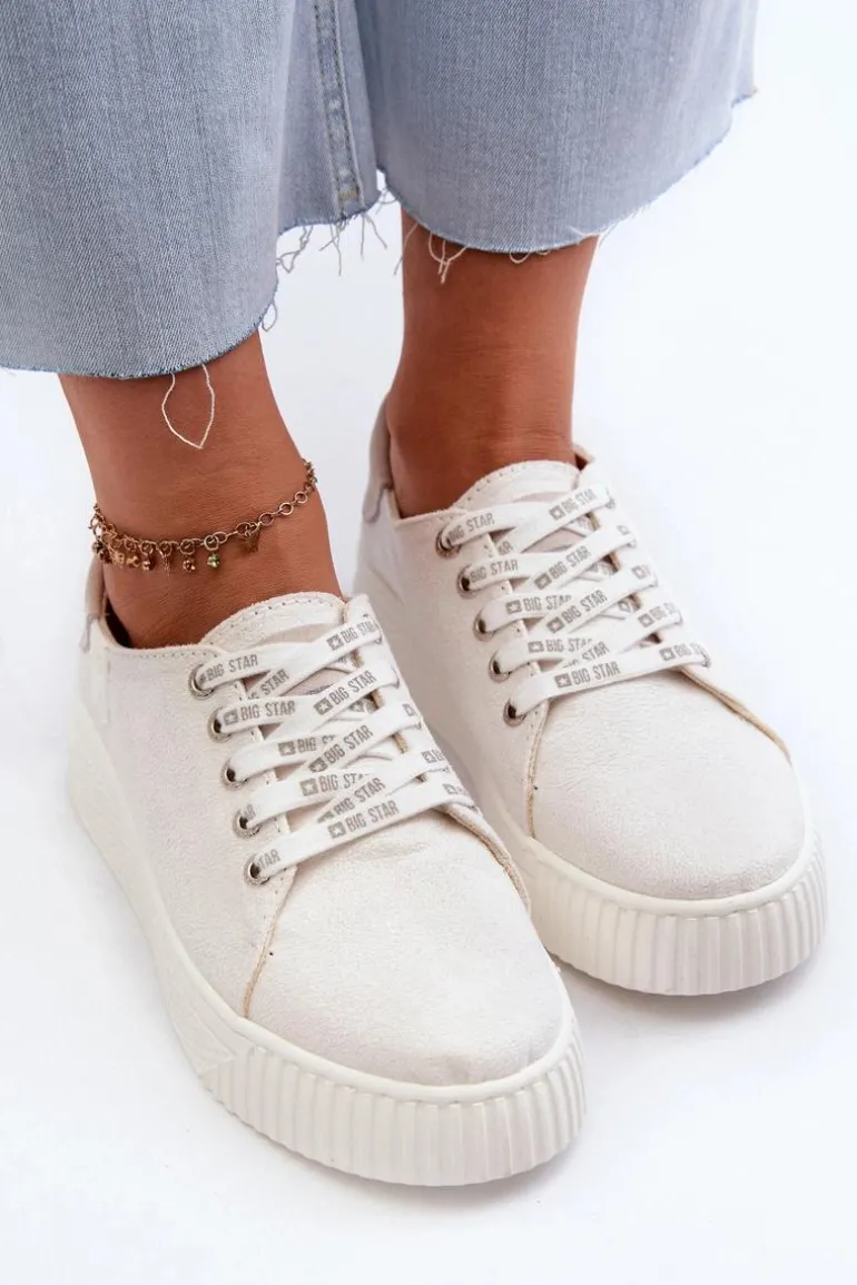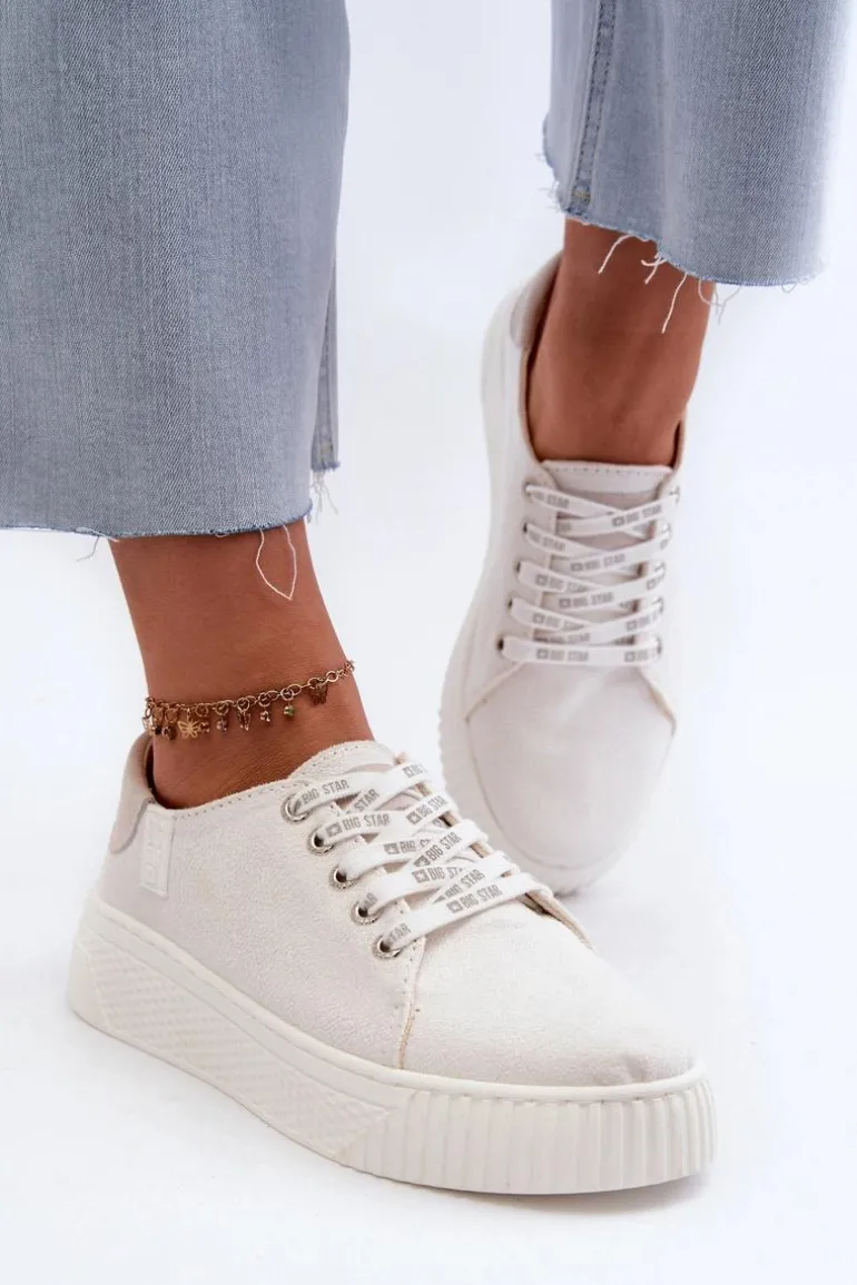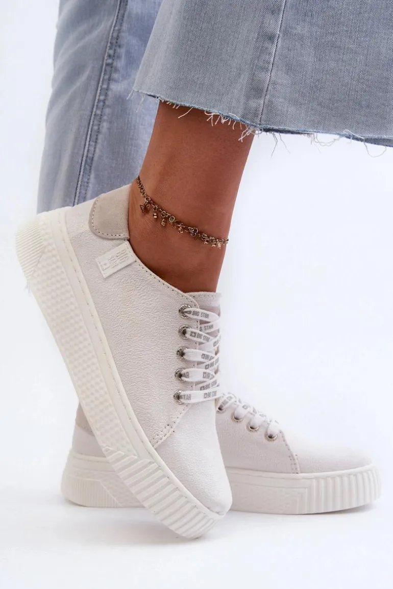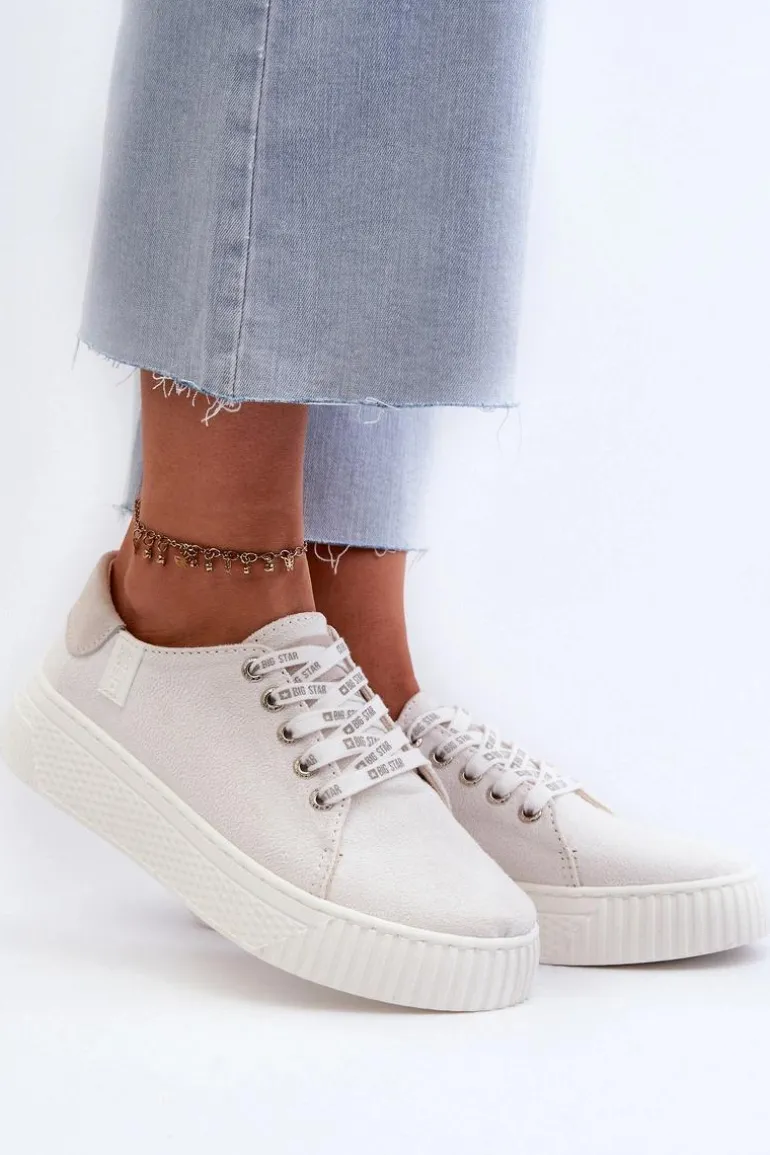 Damskie trampki od marki Big Star wykonane z eko skóry. Osadzone na grubej platformie z gumowego tworzywa. Noski zaokrąglone. Model ten posiada wyjątkową wkładkę MEMORY FOAM SYSTEM, która zapamiętuje kształt stopy, zapewnia doskonałe dopasowanie, absorbuje wstrząsy oraz jest odporna na odkształcenia. Dodatkowo struktura pianki pozwala na odparowywanie wilgoci i regulację temperatury. Ten niezwykle stylowy fason koniecznie musi się znaleźć w Twojej wiosenno-letniej garderobie! Przy wyborze rozmiaru prosimy sugerować się tabelą rozmiarów.