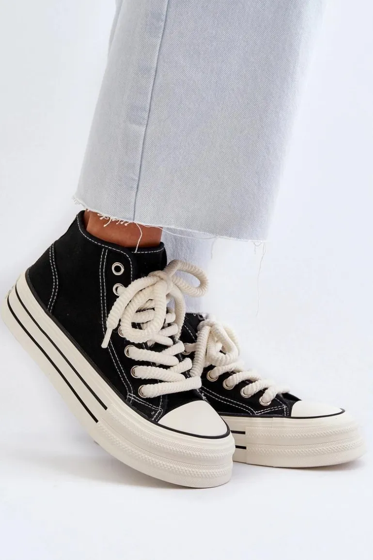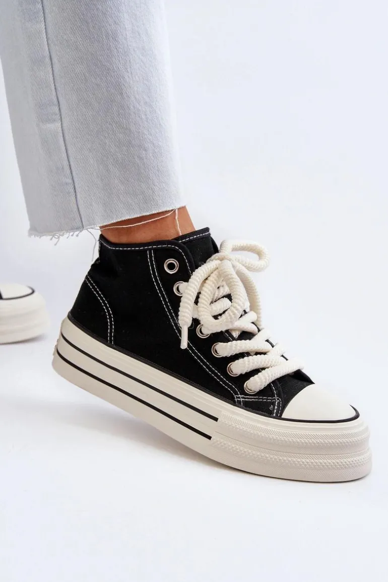 Trampki Damskie Na Platformie Czarne Aineri