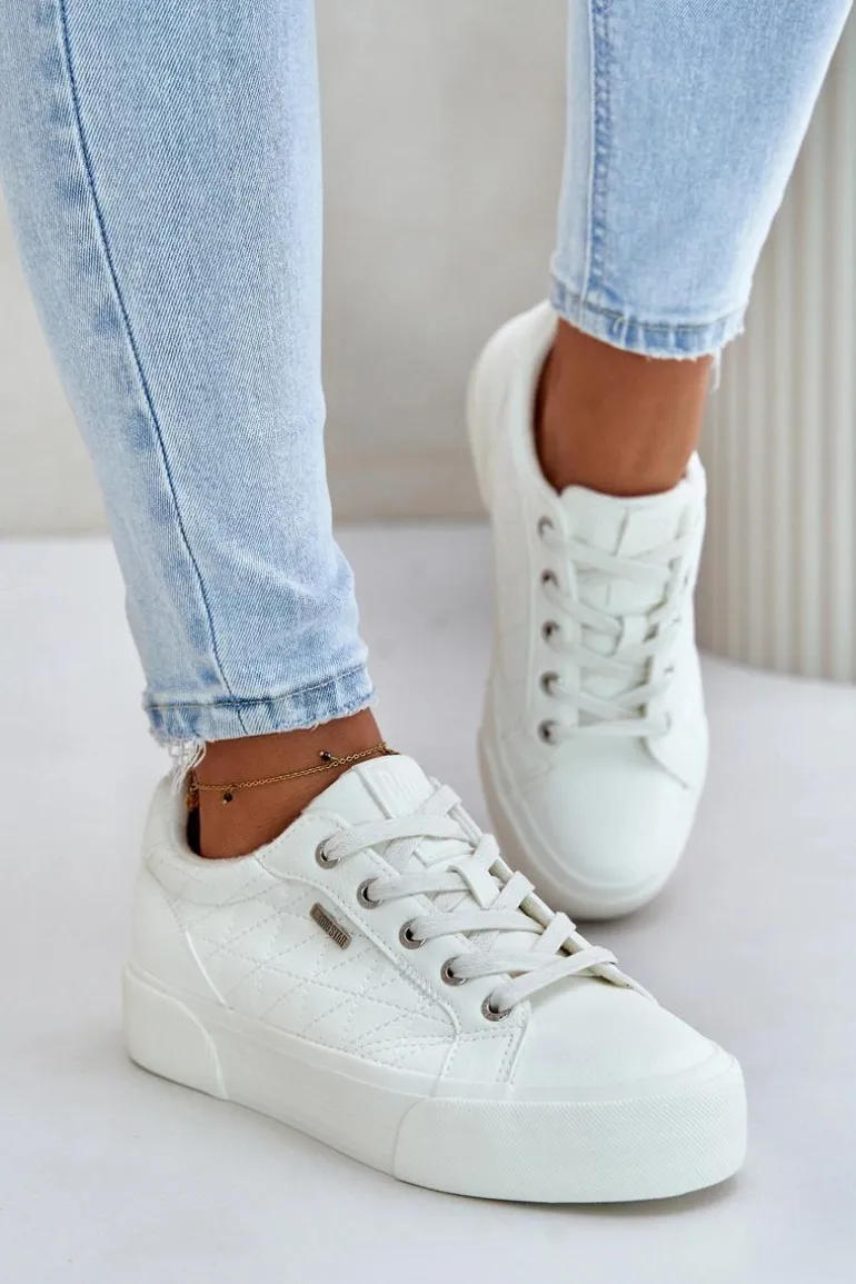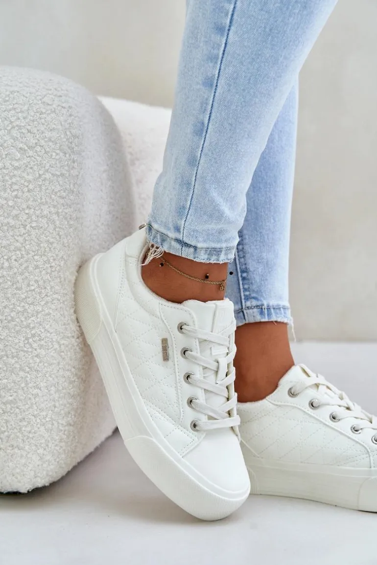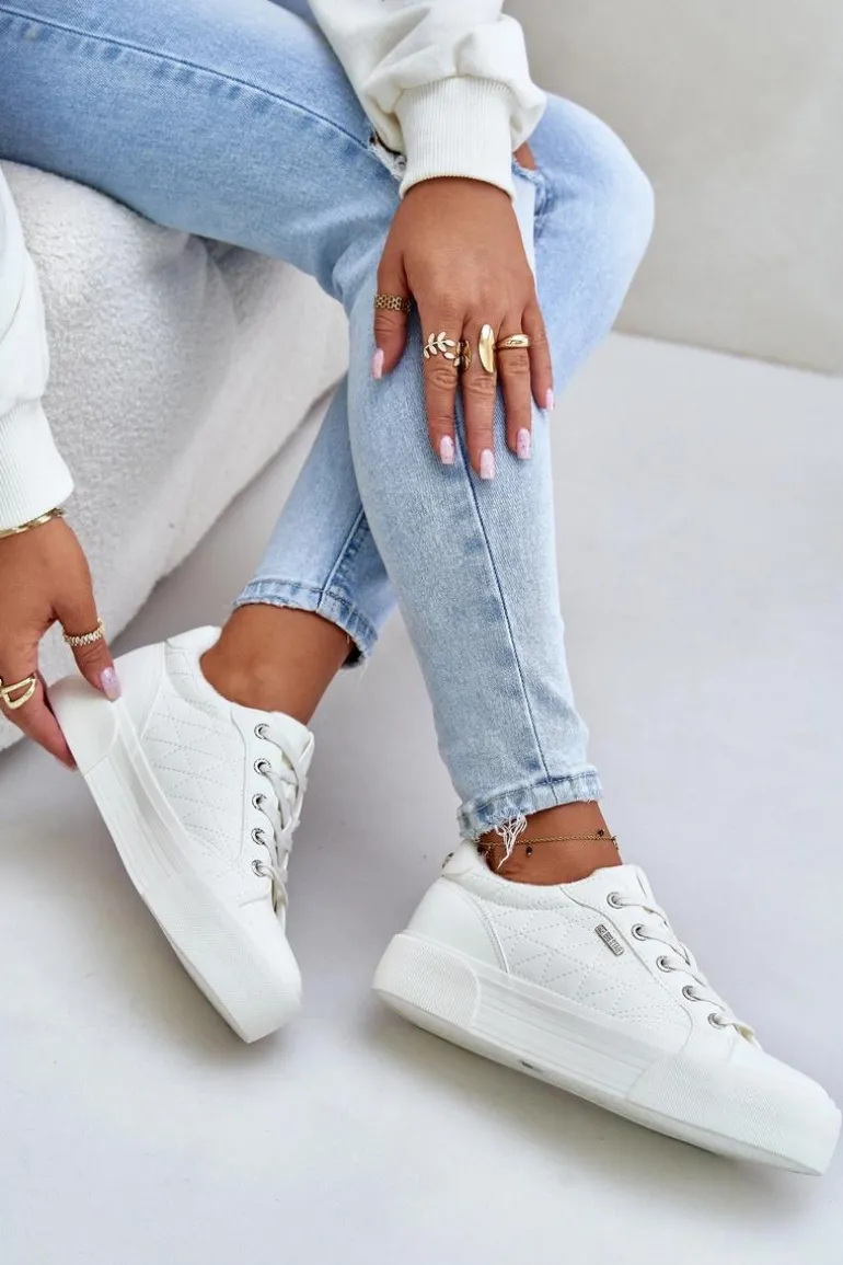 Trampki Big Star wykonane z eko skóry to stylowe i wygodne obuwie na chłodniejsze dni. Osadzone na platformie, dodają charakteru każdej stylizacji, jednocześnie zapewniając komfort noszenia. Ocieplane kocem obuwniczym, świetnie sprawdzą się w chłodniejsze dni, zapewniając ciepło i wygodę. Cholewka ozdobiona przeszyciami. Zaokrąglone noski. Przy wyborze rozmiaru prosimy sugerować się tabelą rozmiarów.