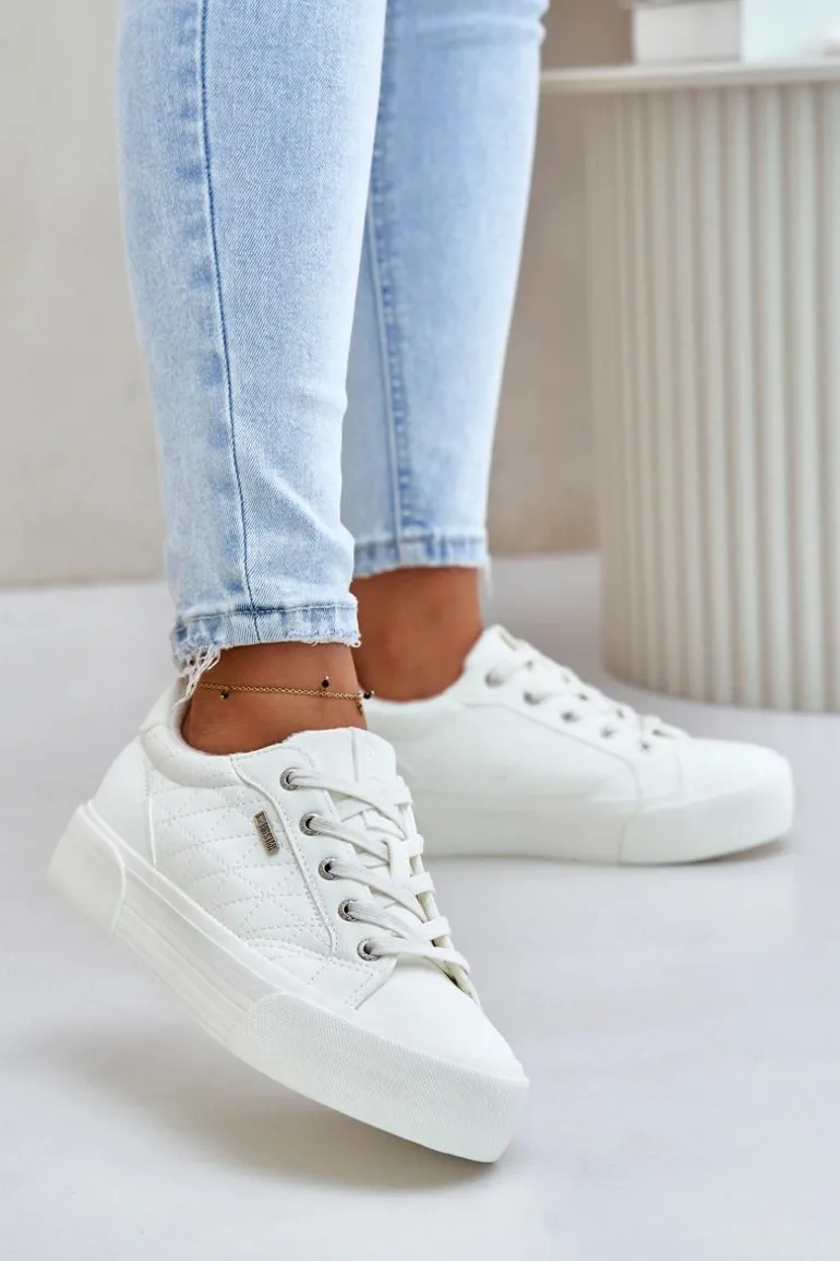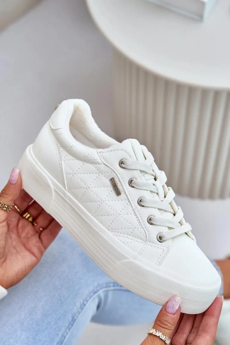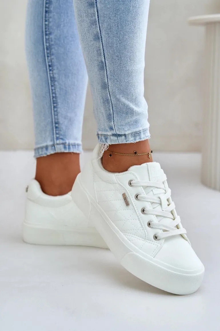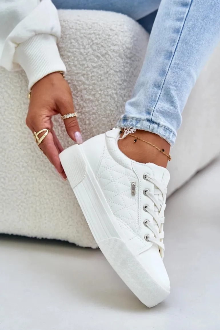 Trampki Big Star wykonane z eko skóry to stylowe i wygodne obuwie na chłodniejsze dni. Osadzone na platformie, dodają charakteru każdej stylizacji, jednocześnie zapewniając komfort noszenia. Ocieplane kocem obuwniczym, świetnie sprawdzą się w chłodniejsze dni, zapewniając ciepło i wygodę. Cholewka ozdobiona przeszyciami. Zaokrąglone noski. Przy wyborze rozmiaru prosimy sugerować się tabelą rozmiarów.