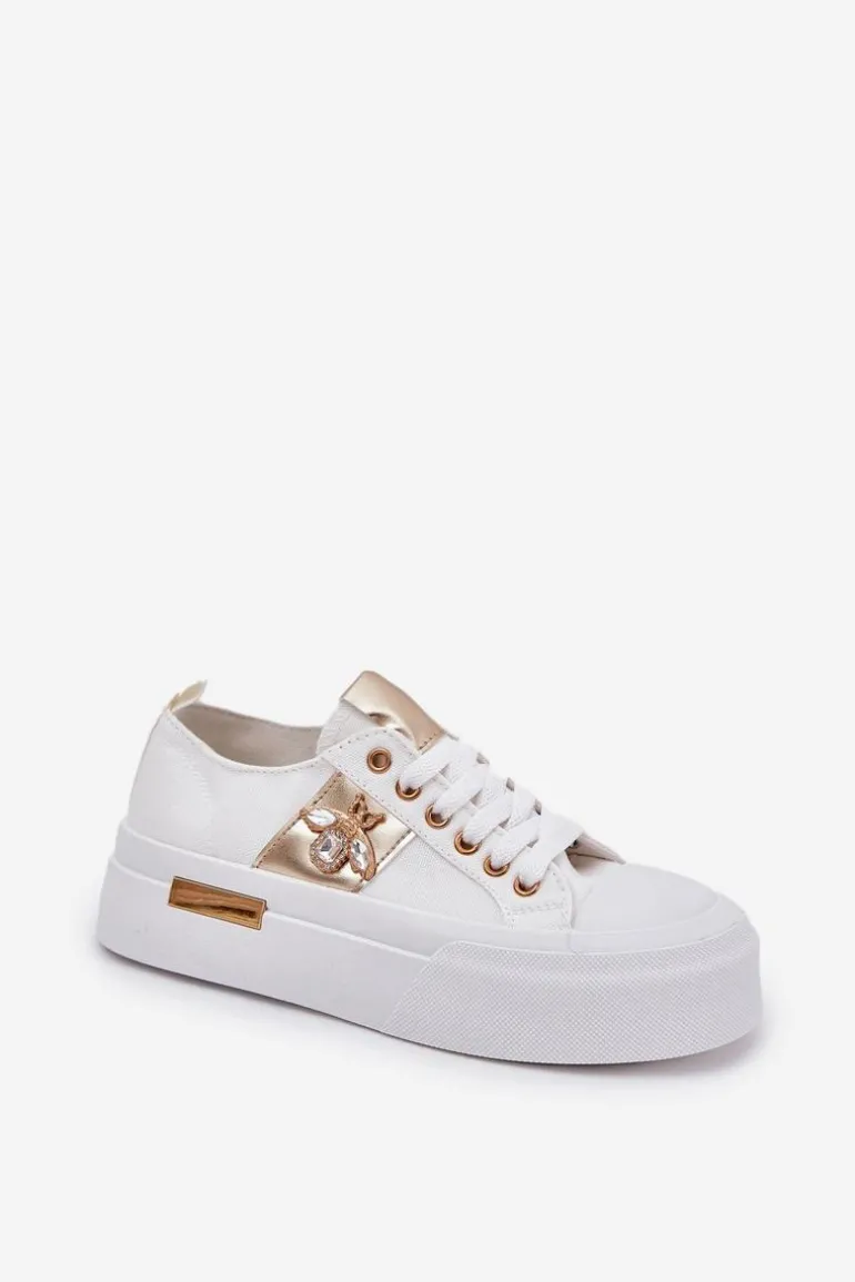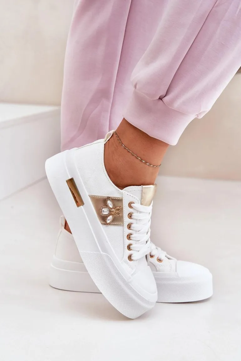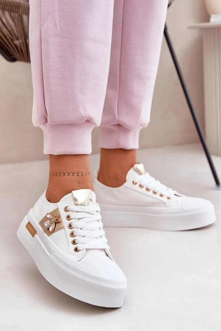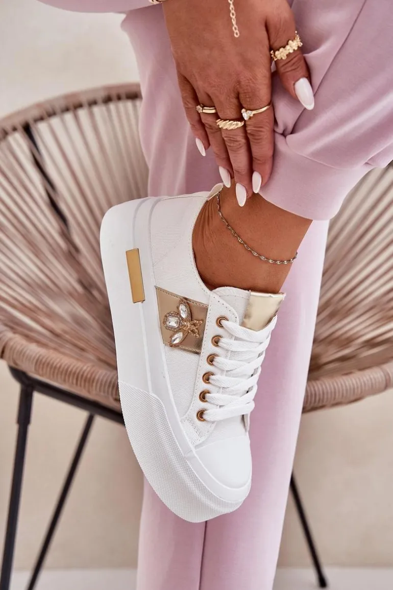 Stylowe trampki damskie wykonane z materiału tekstylnego. Osadzone na masywnej platformie, która dodaje modnego charakteru. Zaokrąglone noski zapewniają wygodę i swobodę ruchu, a ozdobny detal na boku cholewki dodaje im unikalnego stylu. Miękka piankowa wkładka gwarantuje komfort przez cały dzień, zapewniając odpowiednią amortyzację na każdym kroku. Idealne do codziennych stylizacji. Przy wyborze rozmiaru prosimy sugerować się tabelą rozmiarów.