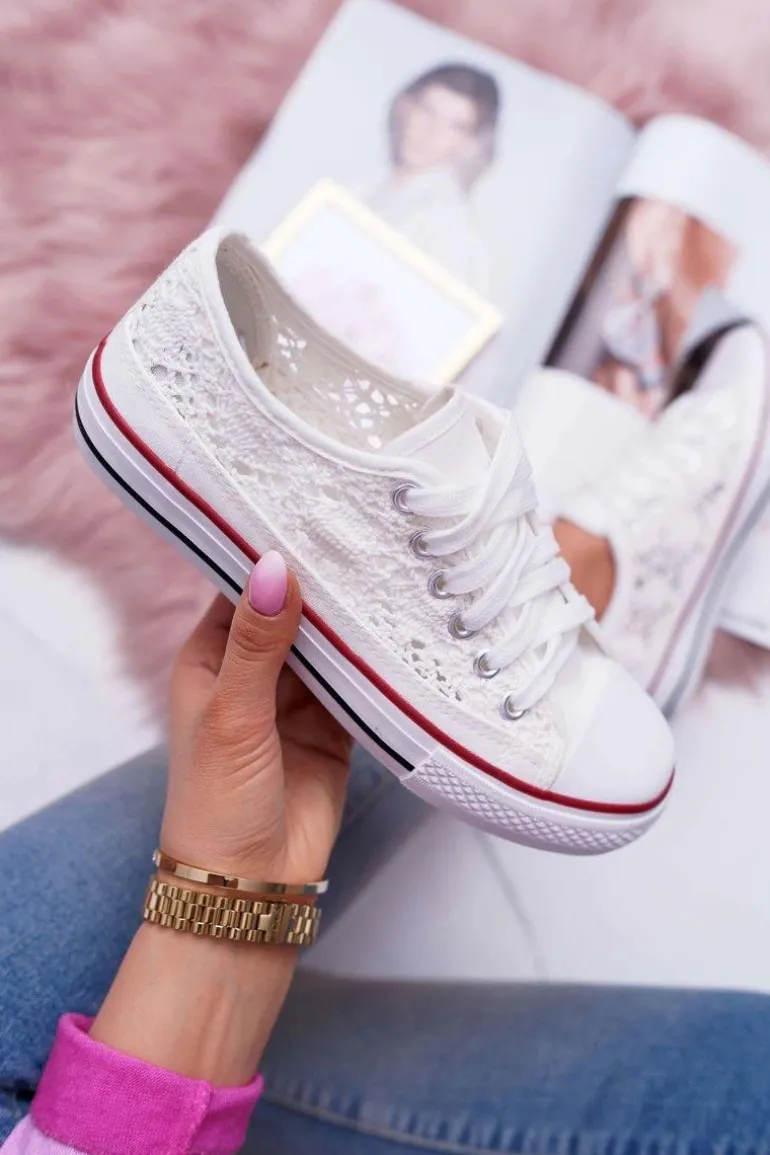 Trampki Damskie Niskie Koronkowe Białe Veroli