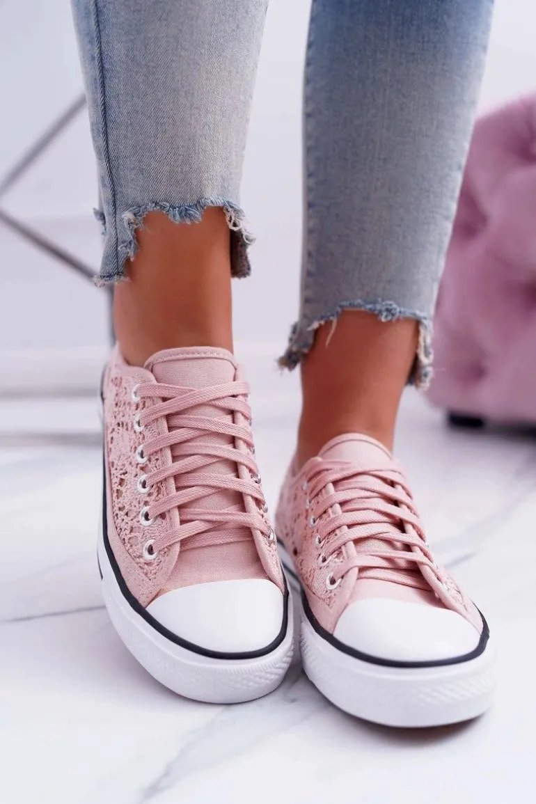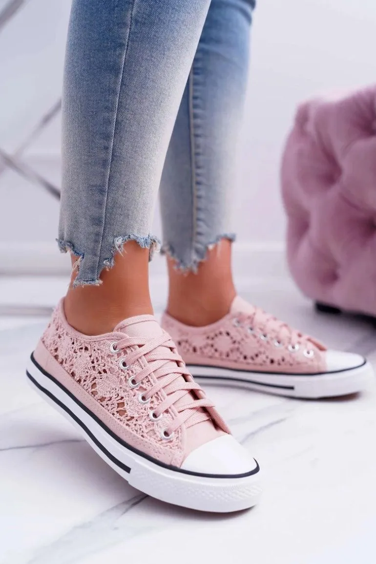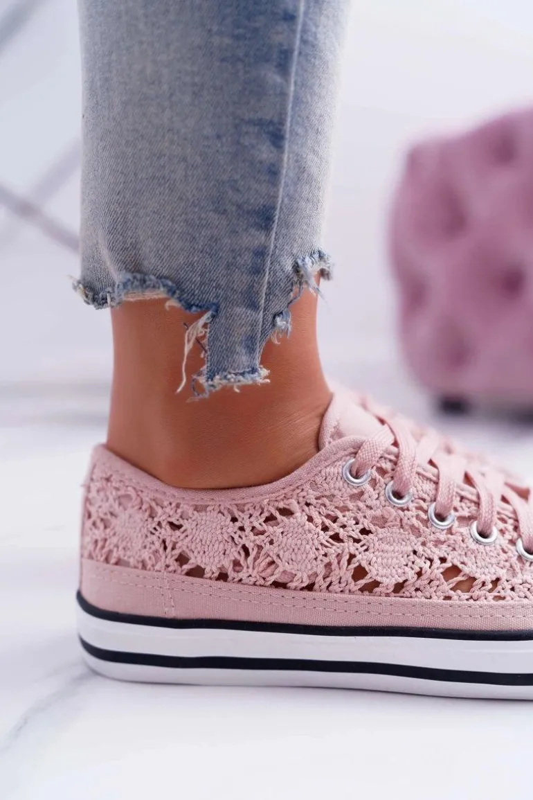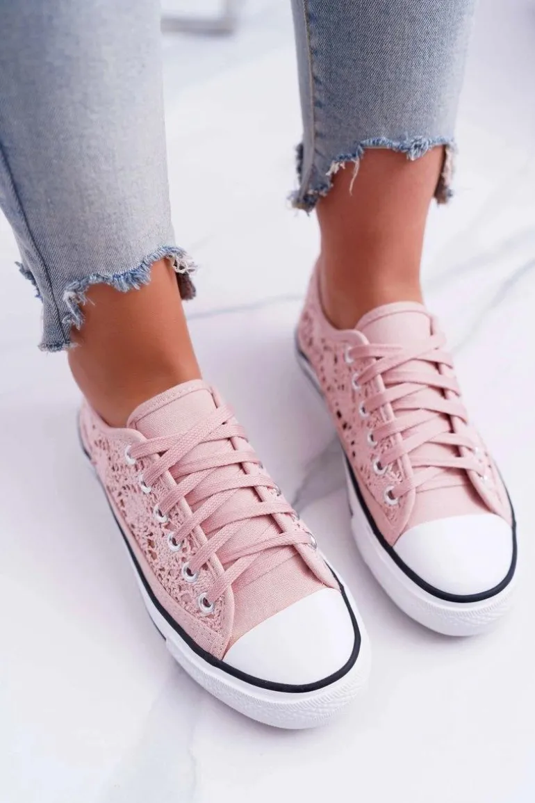 Trampki Damskie Niskie Koronkowe Różowe Veroli