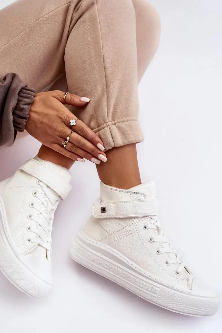 Damskie trampki od marki BIG STAR wykonane z eko skóry. Osadzone na platformie z gumowego tworzywa. Cholewka za kostkę. Model sznurowany z dodatkowym zapięciem na rzep. Noski zaokrąglone, usztywniony zapiętek. Środek ocieplony kocem obuwniczym. Koniecznie sprawdź całą naszą kolekcję butów marki BIG STAR. Przy wyborze rozmiaru prosimy sugerować się tabelą rozmiarów.
