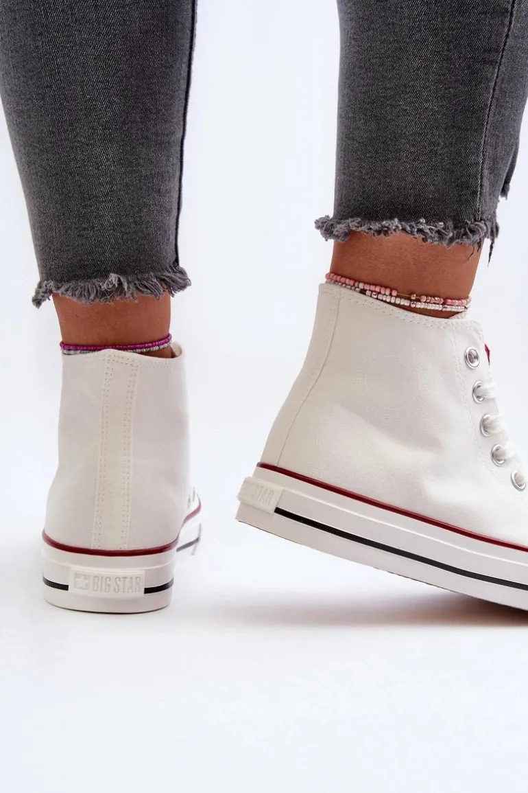 Damskie trampki marki Big Star. Wykonane z wysokiej jakości materiału tekstylnego. Cholewka sięgająca za kostkę dodaje stabilności, co jest szczególnie ważne podczas długich spacerów czy aktywności na świeżym powietrzu. W tych modnych trampkach będziesz czuć się swobodnie i stylowo jednocześnie! Przy wyborze rozmiaru prosimy sugerować się tabelą rozmiarów.