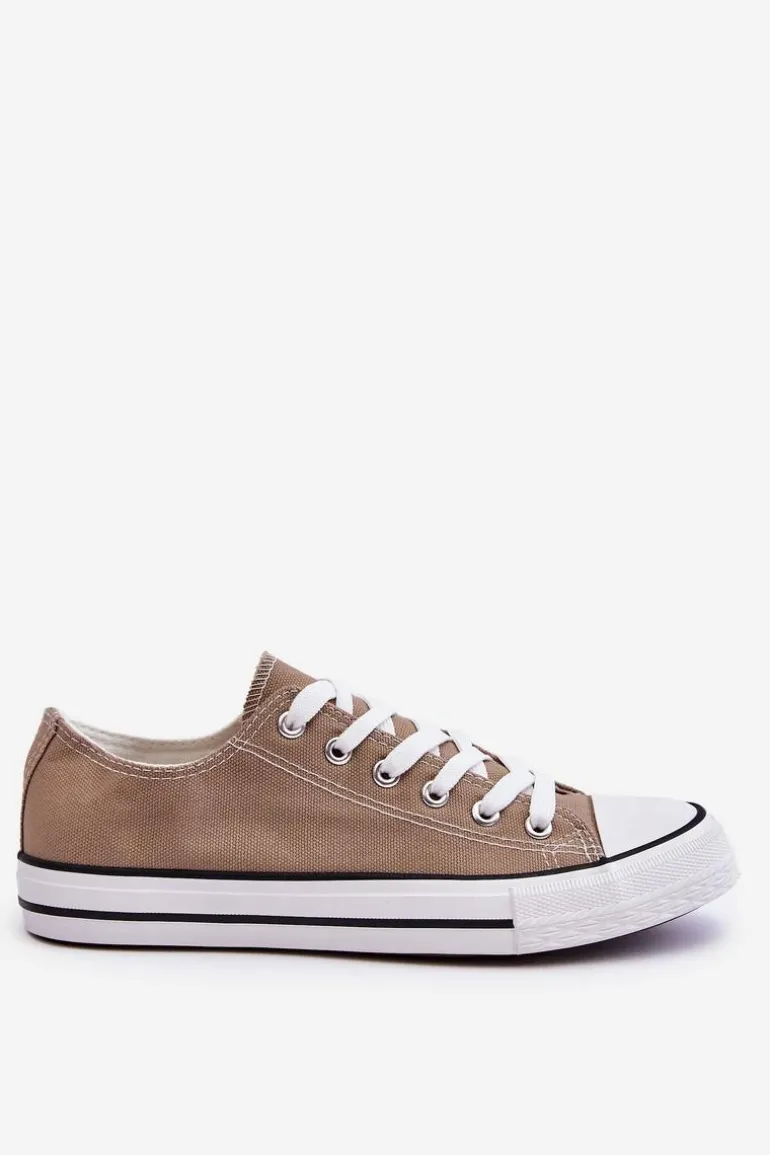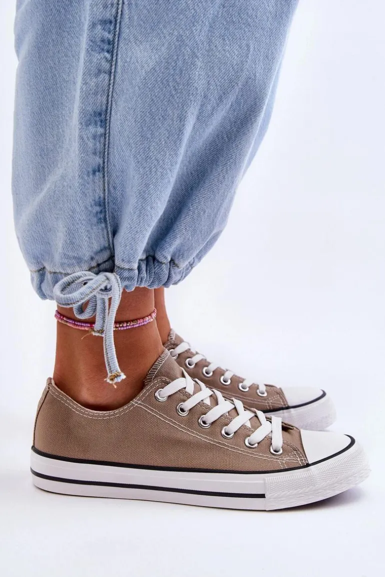 Klasyczne, sznurowane trampki damskie zostały wykonane z materiału tekstylnego. Posiadają gumową podeszwę, która jest dodatkowo antypoślizgowa. Ponadczasowy model, który powinnaś mieć w swojej szafie! Z pewnością założysz je do wielu stylizacji! Nosek został wzmocniony gumowym tworzywem. Wygodna, materiałowa wkładka zapewni komfort podczas użytkowania. Przy wyborze rozmiaru prosimy sugerować się tabelą rozmiarów.