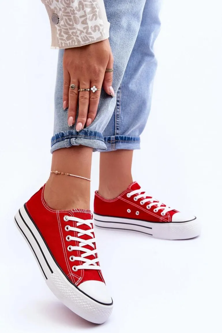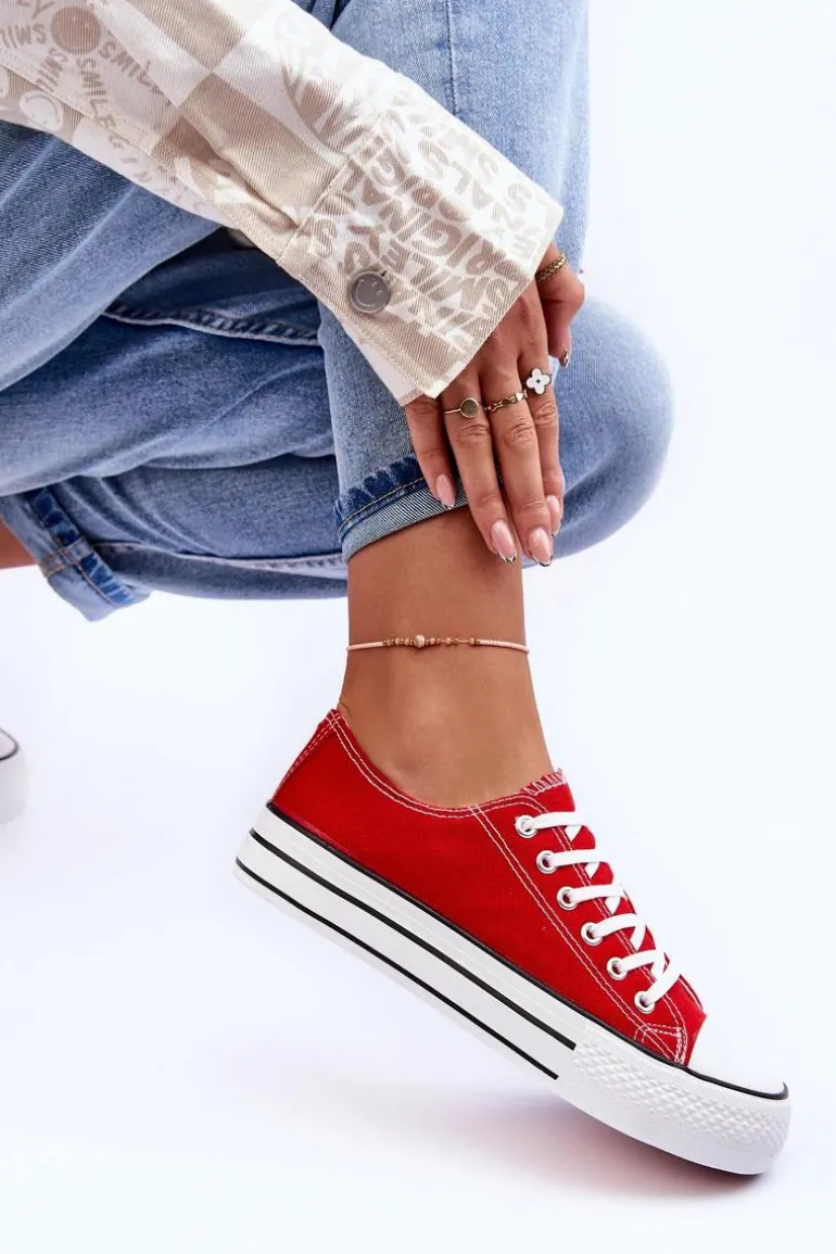 Trampki Klasyczne Niskie Na Platformie Czerwone Jazlyn