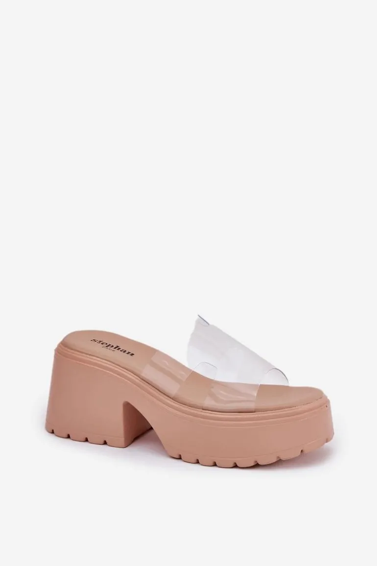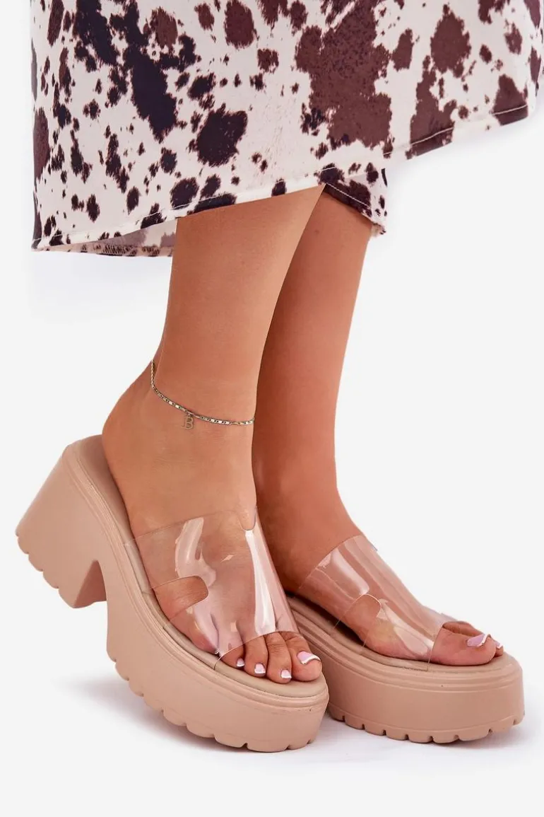 Stylowe klapki damskie wykonane z eko skóry. Osadzone na platformie i masywnym, stabilnym obcasie. Z przodu, na pasku, posiadają subtelne wycięcia, które nadają im modnego, nowoczesnego charakteru. Miękka wkładka zapewnia komfort noszenia przez cały dzień. Doskonały wybór na letnie dni, te klapki będą idealnym dopełnieniem codziennych stylizacji. Przy wyborze rozmiaru prosimy sugerować się tabelą rozmiarów.