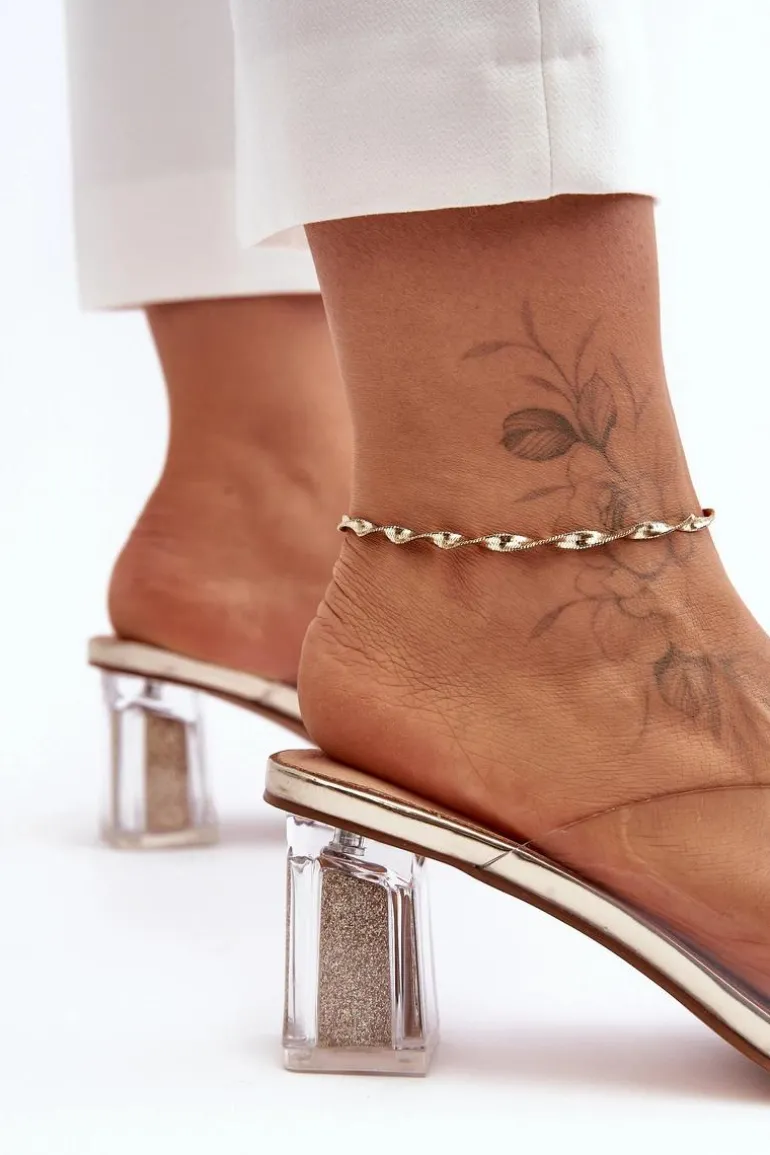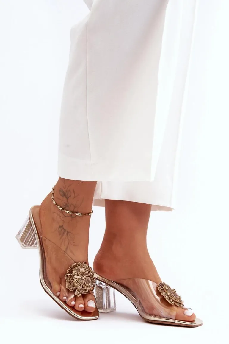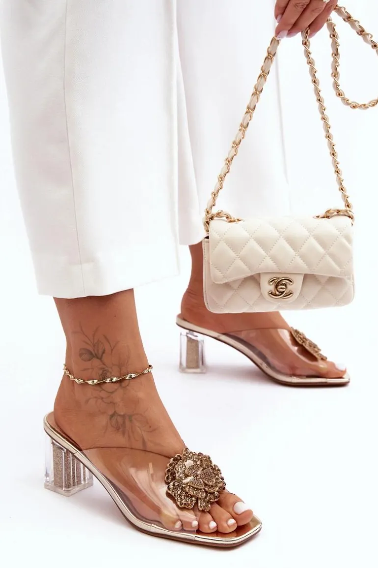 Transparentne Klapki Na Słupku Z Ozdobą Złote S.Barski MR1037-20