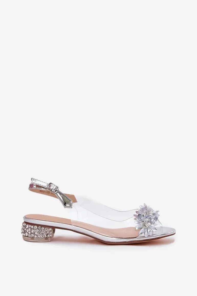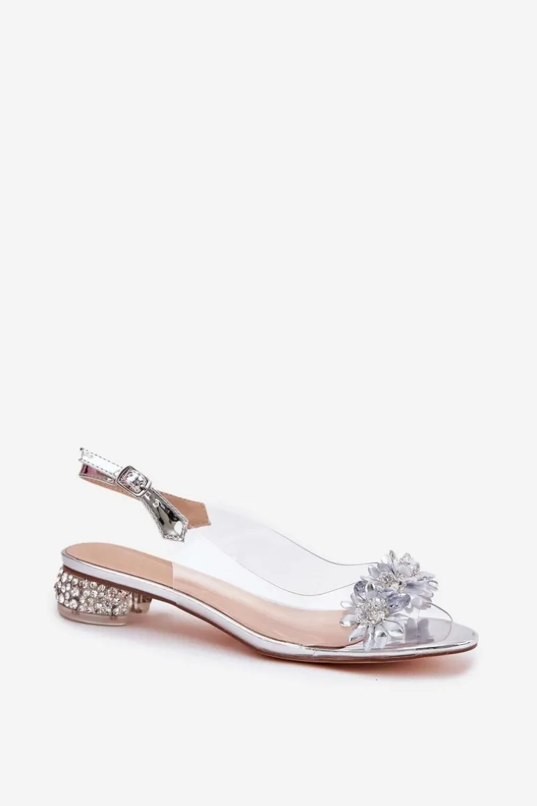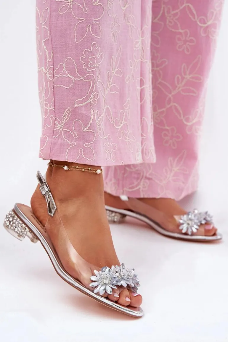 Transparentne Sandały Na Niskim Obcasie Ze Zdobieniem D&A MR51-709 Srebrne
