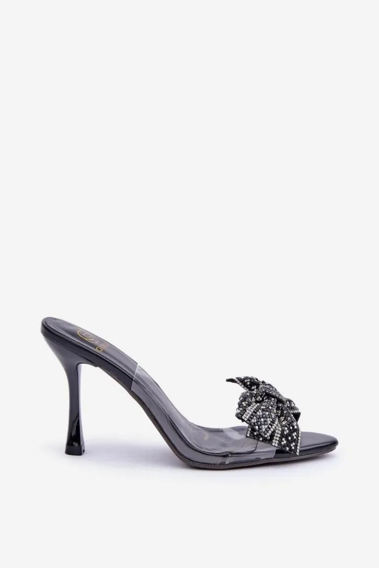 Eleganckie transparentne sandały na szpilce, które idealnie podkreślą wyjątkowy charakter Twojej stylizacji. Model wyróżnia się efektowną, błyszczącą kokardą z przodu, dodającą odrobinę glamour. Model ten doskonale komponują się z sukniami koktajlowymi oraz eleganckimi kompletami, tworząc szykowny i modny look. Przy wyborze rozmiaru prosimy sugerować się tabelą rozmiarów.