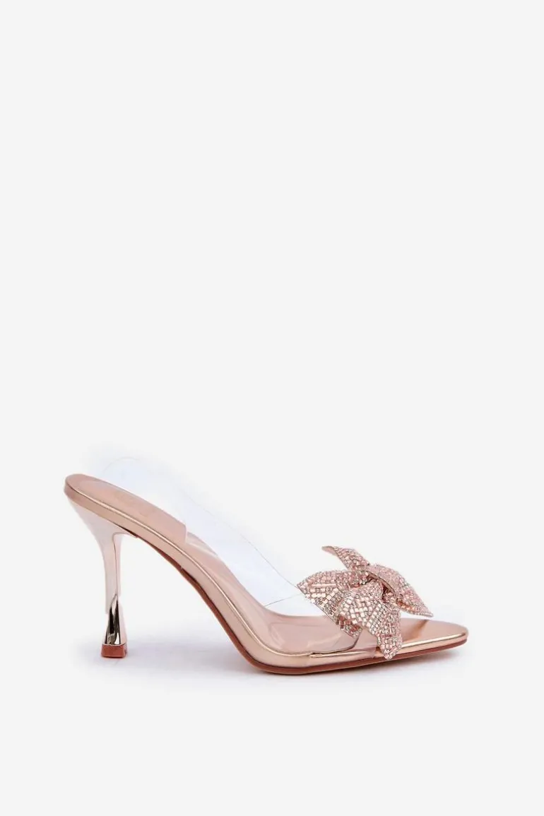 Eleganckie transparentne sandały na szpilce, które idealnie podkreślą wyjątkowy charakter Twojej stylizacji. Model wyróżnia się efektowną, błyszczącą kokardą z przodu, dodającą odrobinę glamour. Model ten doskonale komponują się z sukniami koktajlowymi oraz eleganckimi kompletami, tworząc szykowny i modny look. Przy wyborze rozmiaru prosimy sugerować się tabelą rozmiarów.