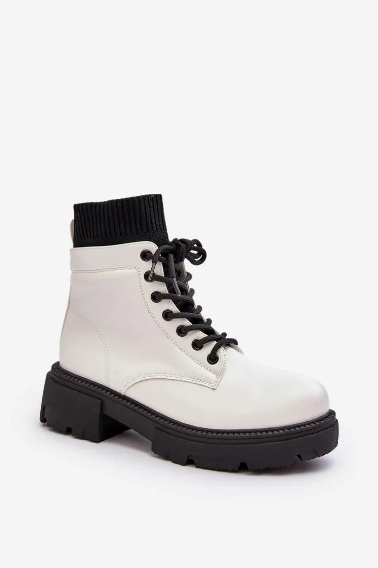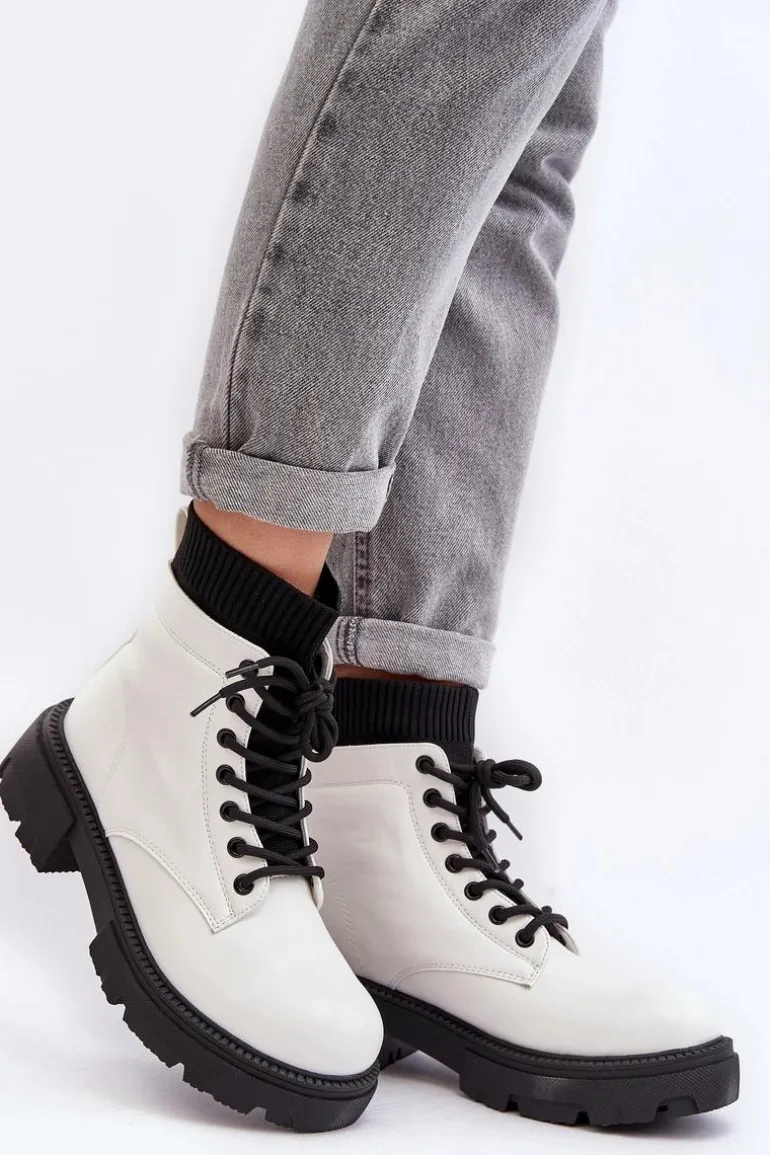 Damskie trapery wykonane z eko skóry. Osadzone na masywnym, płaskim obcasie oraz platformie. Model wsuwany z cholewką za kostkę. Z przodu sznurowanie. Noski zaokrąglone. Usztywniony zapiętek. Ten klasyczny model wykorzystasz do wielu jesienno-zimowych stylizacji! Przy wyborze rozmiaru prosimy sugerować się tabelą rozmiarów.