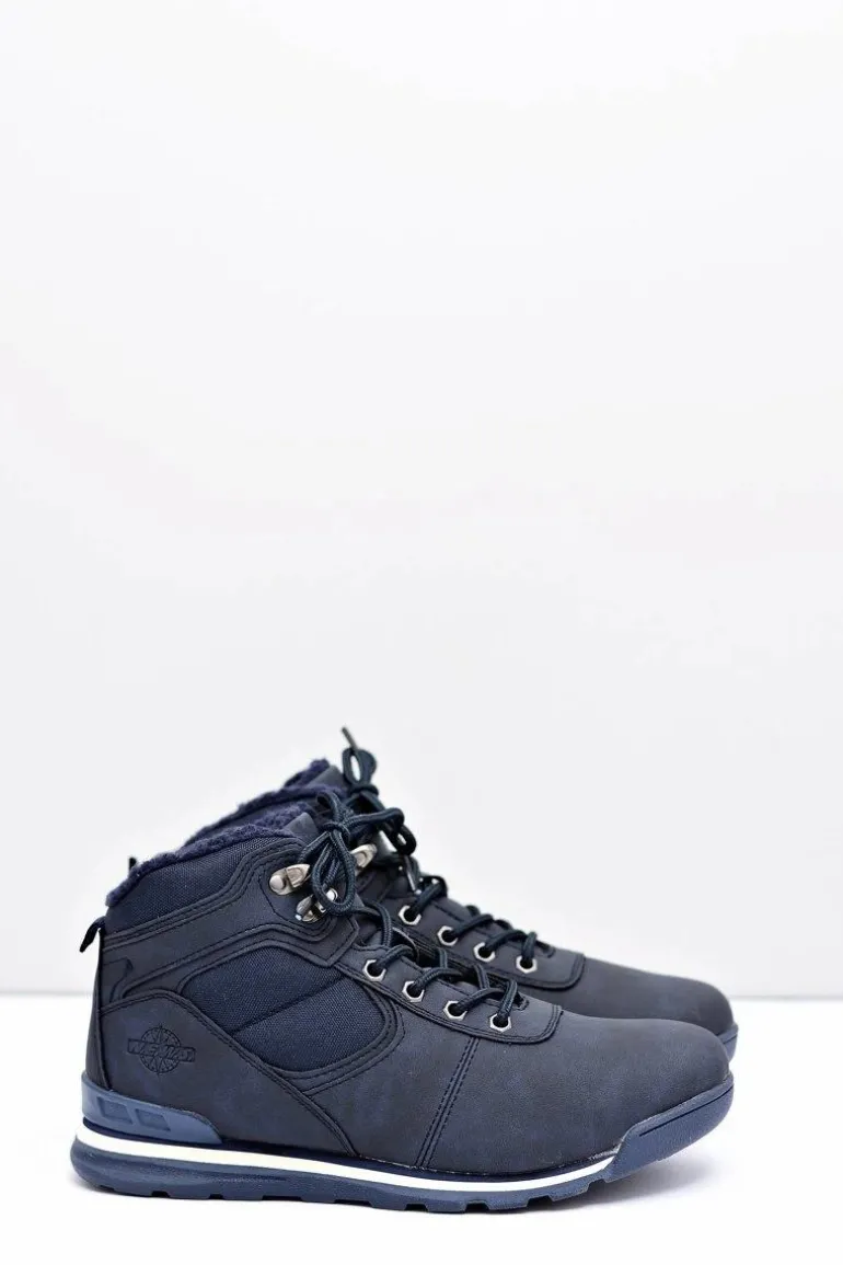 Trekkingowe Damskie Granatowe Ocieplane Buty z Kożuszkiem Sheep