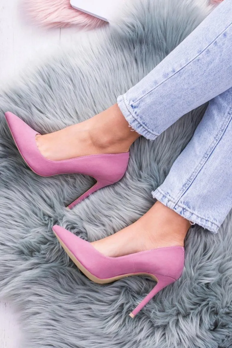 VICES Różowe Wysokie Szpilki W Szpic Zamsz Sellen