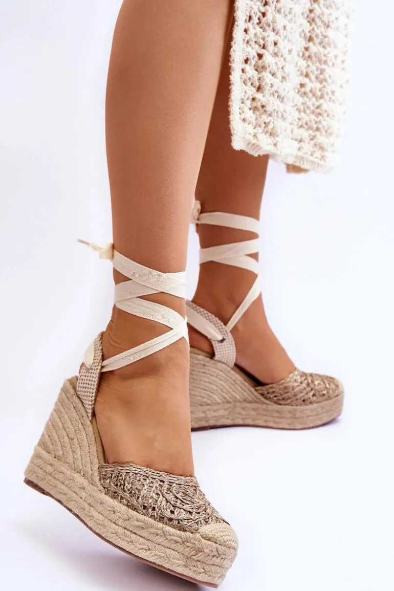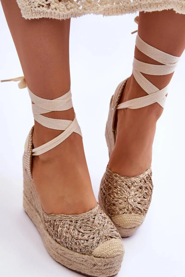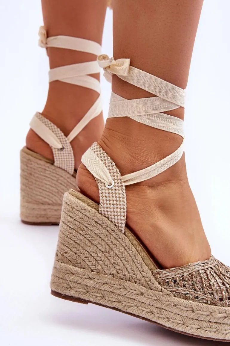 Modne i wygodne sandały osadzone na obcasie w postaci koturnu ozdobionego jutową plecionką. Sandały posiadają antypoślizgową podeszwę wykonaną z gumowego tworzywa. Cholewka została wykonana z połączenia tkaniny oraz tworzywa sztucznego. Sandałki posiadają wiązanie wokół kostki. Wkładka z eko skóry pozwala na komfortowe użytkowanie obuwia. Przy wyborze rozmiaru prosimy sugerować się tabelą rozmiarów.