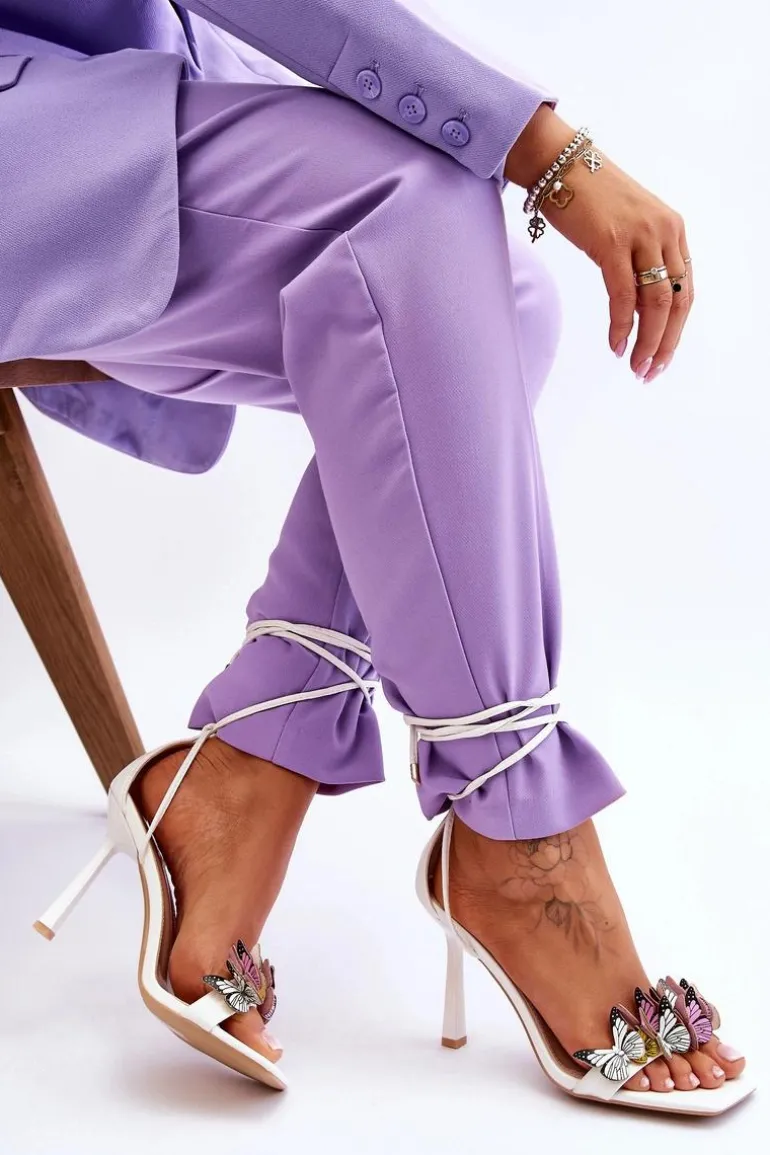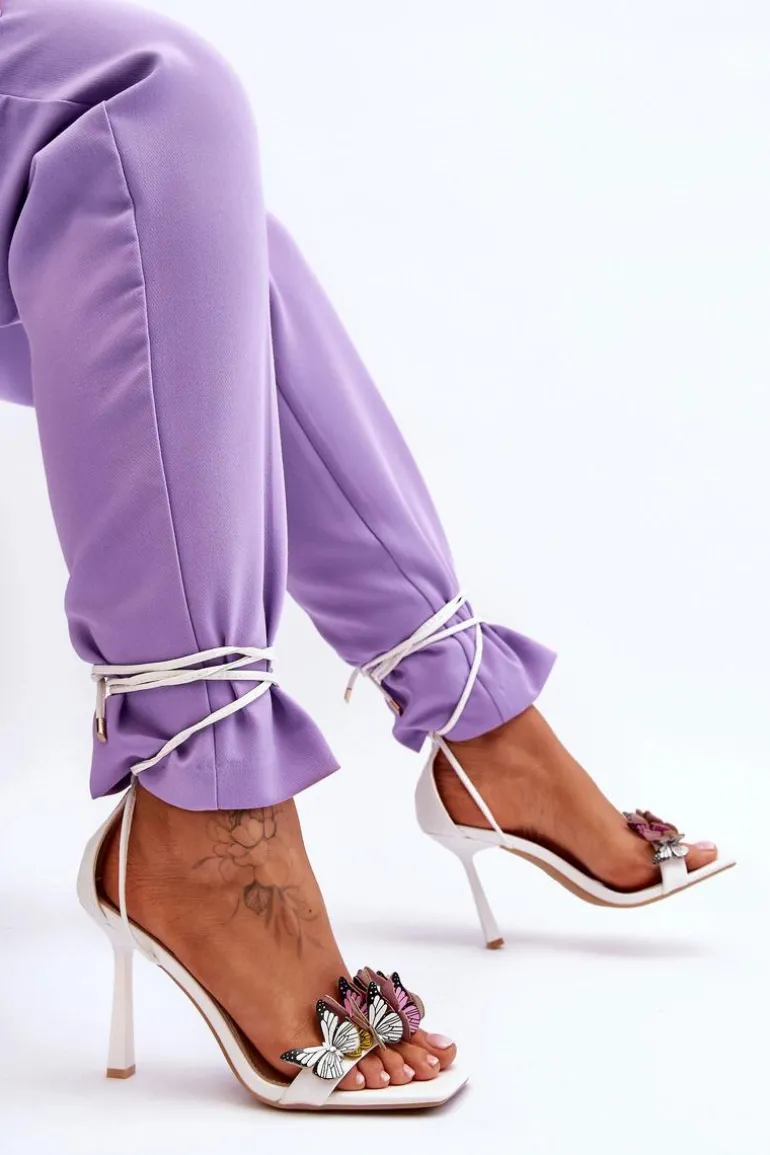 Niesamowite sandałki damskie wykonane z eko skóry posiadają na przodzie urocze motylki. Model ten jest wiązany na wysokości łydki. Dodatkowo zapiętek w tych butach jest usztywniany. Tym modelem urozmaicisz wiele stylizacji! Sandałki zostały osadzone na szpilce. Koniecznie powinny być Twoje! Przy wyborze rozmiaru prosimy sugerować się tabelą rozmiarów.