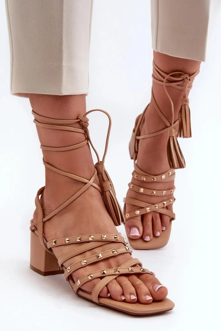 Stylowe sandały damskie wykonane z eko skóry. Z przodu przeplatające się paseczki dodatkowo ozdobione ćwiekami. Model jest wiązany. Doskonałe na letnie dni, te sandały będą idealnym uzupełnieniem Twojej letniej garderoby, dodając nutę stylu i oryginalności. Przy wyborze rozmiaru prosimy sugerować się tabelą rozmiarów.