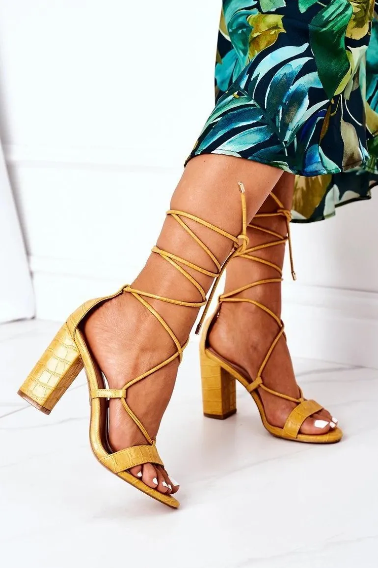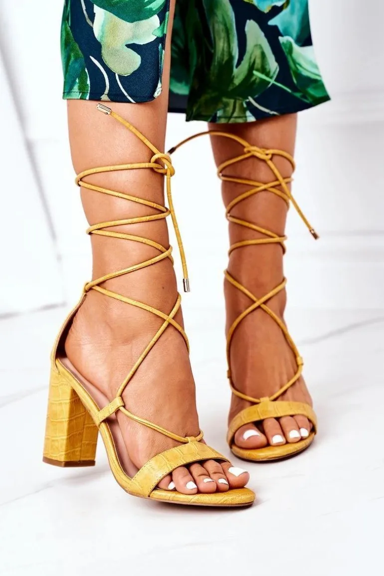 Wiązane Sandały Na Słupku Żółte Catwalk