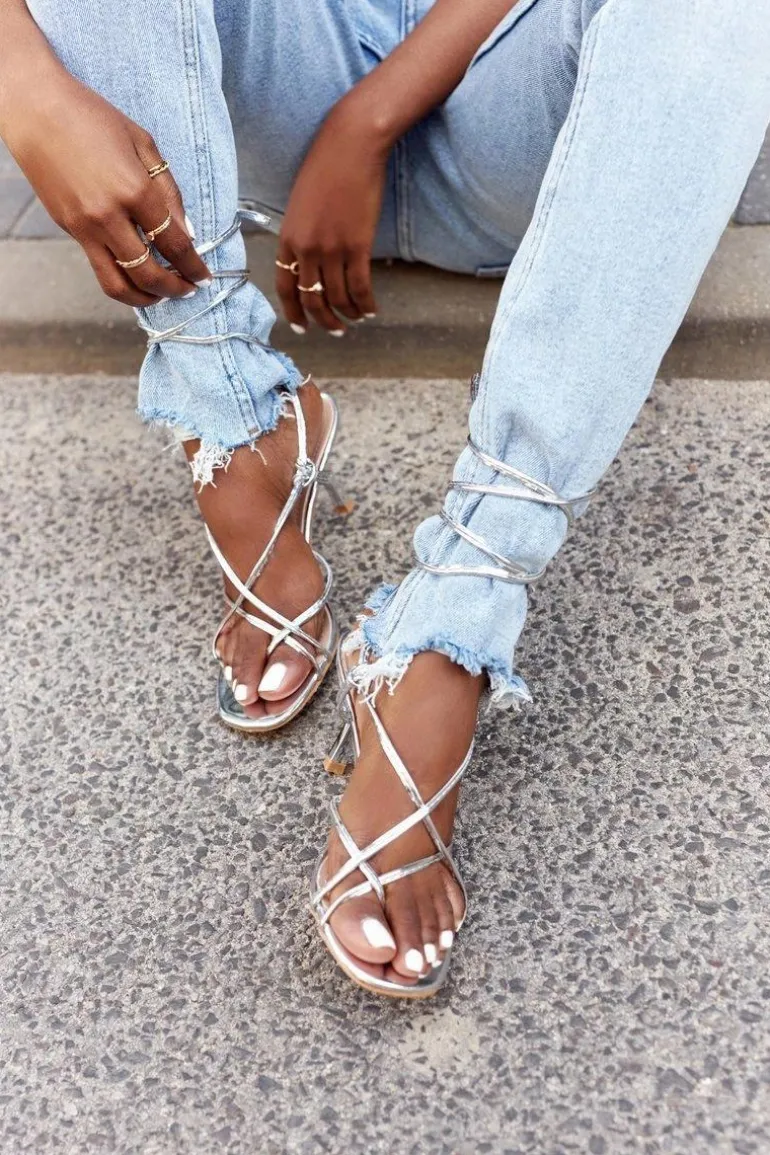 Wyjątkowe sandały na szpilce z wiązaniem wokół kostki. Buty wykonane są z eko skóry, posiadają antypoślizgową podeszwę. Kwadratowy nosek to najmodniejszy fason w tym sezonie! Przy wyborze rozmiaru prosimy kierować się tabelą rozmiarów.
