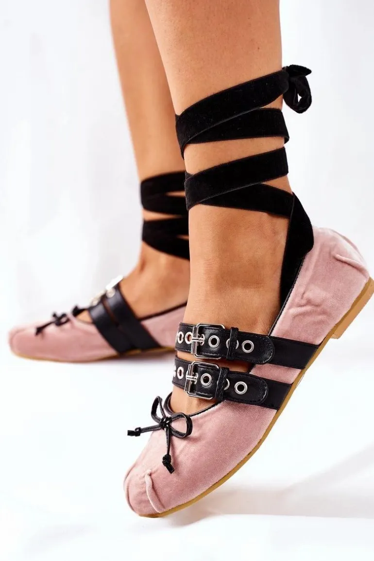 Wiązane Welurowe Baleriny Lu Boo Beżowe