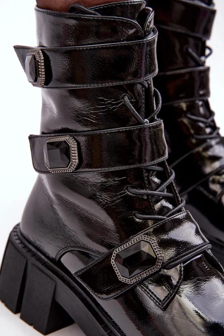 Damskie botki w stylu workerów zostały wykonane z wysokiej jakości eko skóry. W środku ocieplone kocem obuwniczym. Osadzone na płaskim obcasie i platformie. Z przodu sznurowanie oraz paski z ozdobami. Noski zaokrąglone. Usztywniony zapiętek. Ten model na pewno wykorzystasz w wielu stylizacjach! Przy wyborze rozmiaru prosimy sugerować się tabelą rozmiarów.