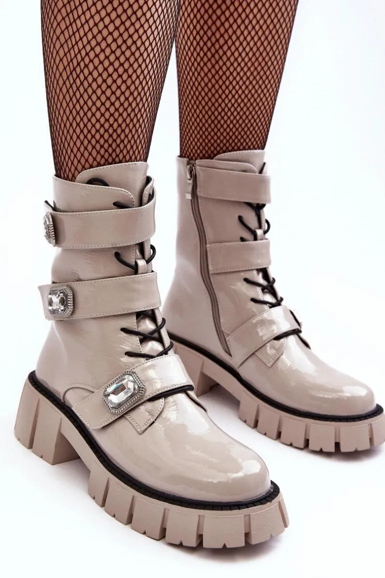 Workery Botki Damskie Lakierowane Jasnoszare S.Barski MR870-61