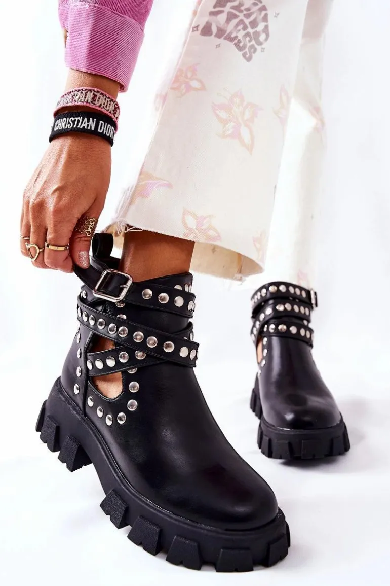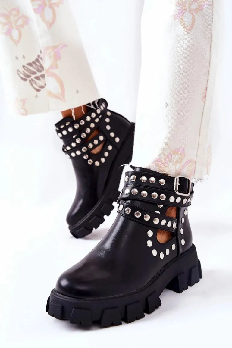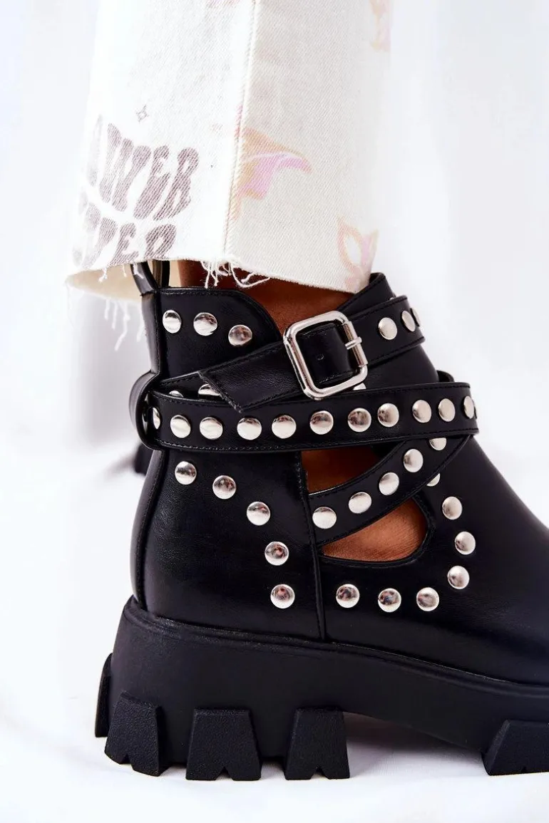 Wierzch botków wykonany jest ze skóry ekologicznej, natomiast wnętrze pokryte jest materiałem tekstylnym. Botki są wsuwane. Posiadają sprzączkę z regulowanym paskiem. Cholewka jest przyozdobiona dżetami, a na jej całości znajdują się efektowne wycięcia. Sprawdź pozostałą naszą kolekcję botków! Przy wyborze rozmiaru prosimy sugerować się tabelą rozmiarów.