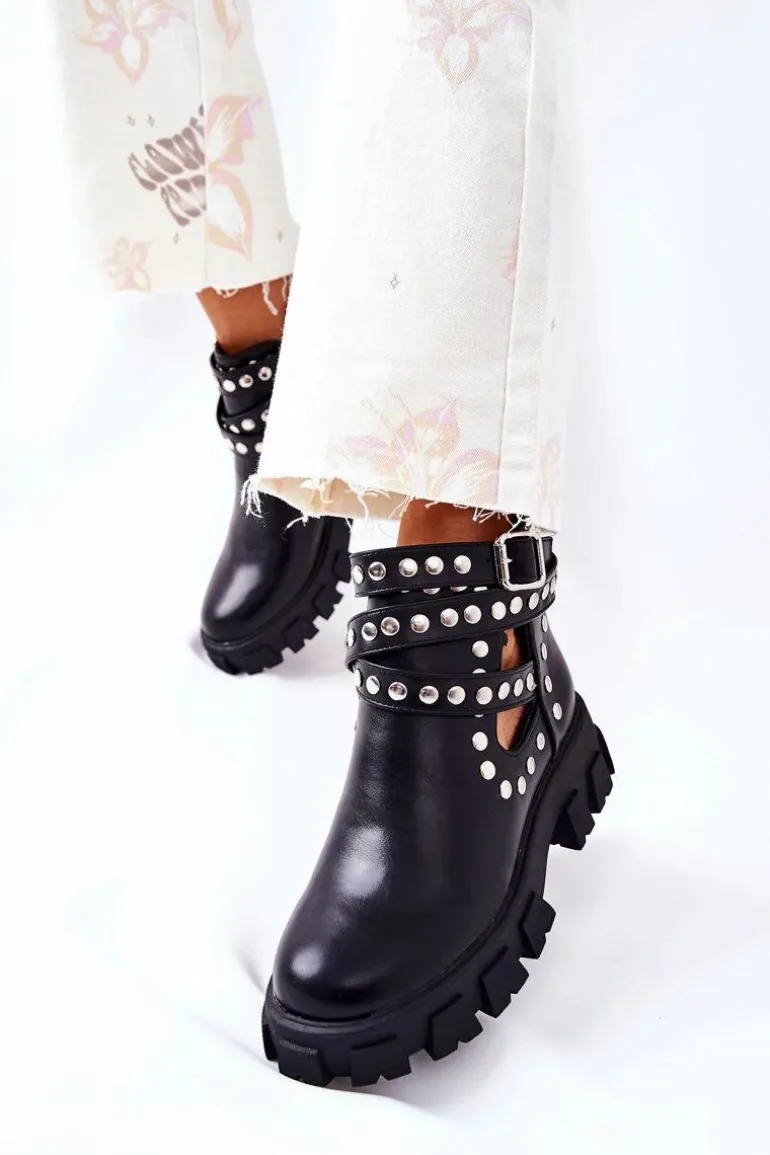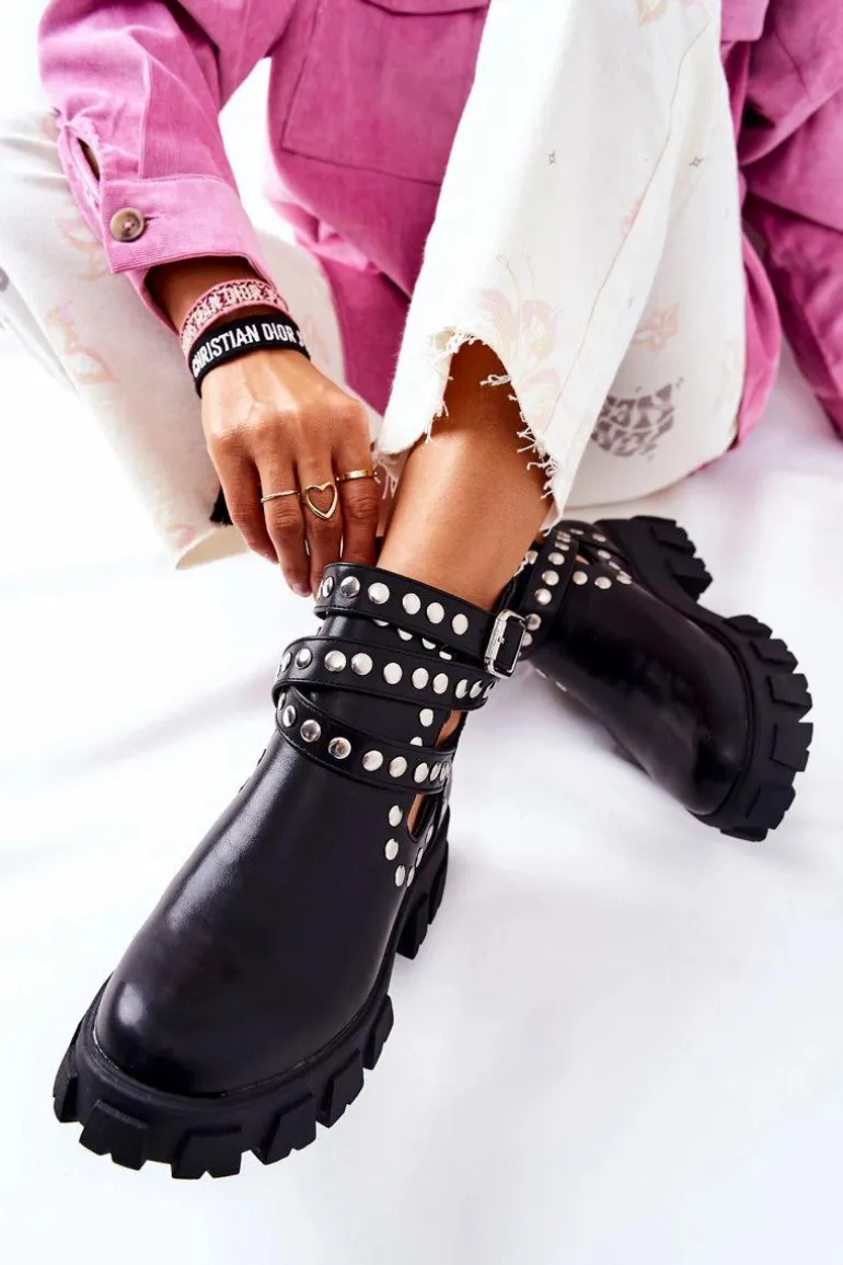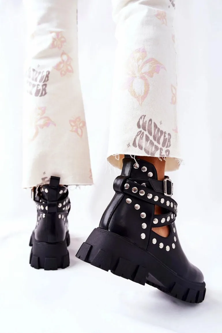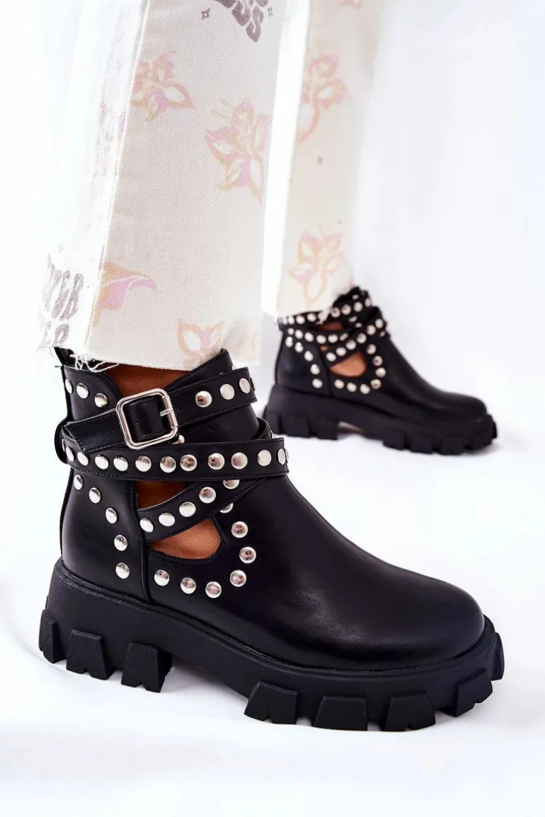 Wierzch botków wykonany jest ze skóry ekologicznej, natomiast wnętrze pokryte jest materiałem tekstylnym. Botki są wsuwane. Posiadają sprzączkę z regulowanym paskiem. Cholewka jest przyozdobiona dżetami, a na jej całości znajdują się efektowne wycięcia. Sprawdź pozostałą naszą kolekcję botków! Przy wyborze rozmiaru prosimy sugerować się tabelą rozmiarów.