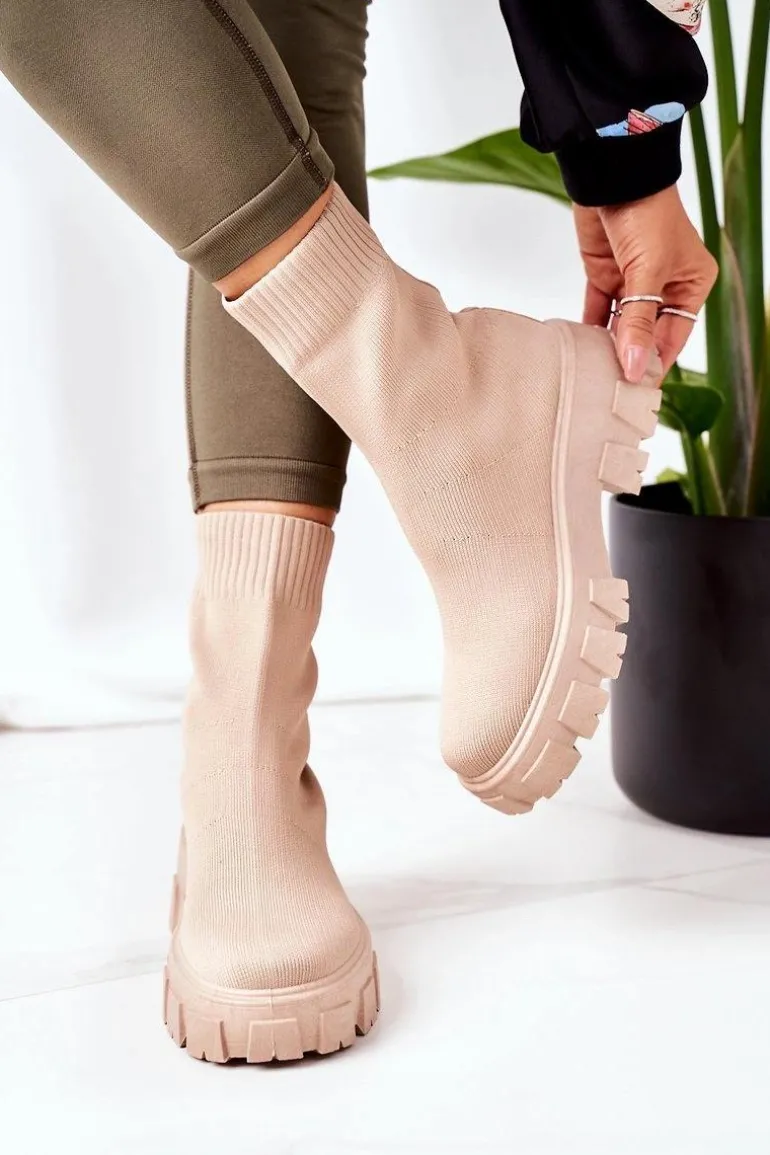 Wyjątkowe botki wykonane z elastycznej tkaniny. Masywna platforma i dopasowana cholewka wysmuklą Twoje nogi! Przy wyborze rozmiaru prosimy sugerować się tabelą rozmiarów.