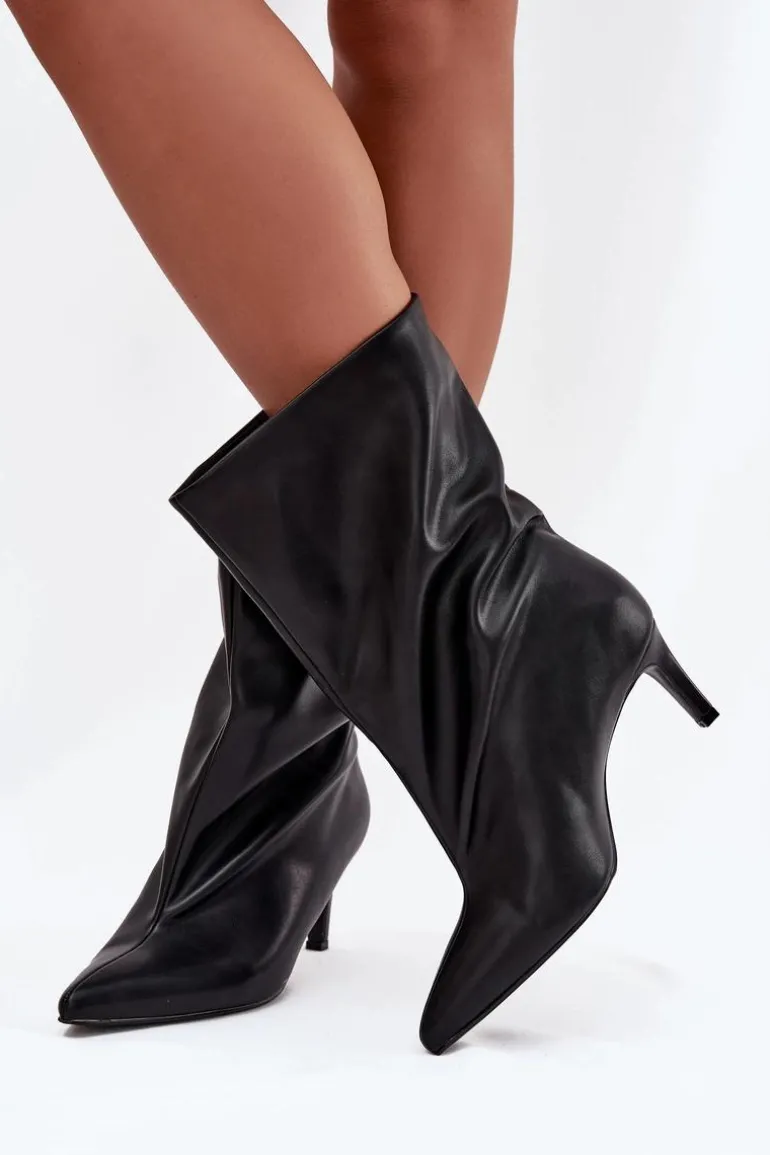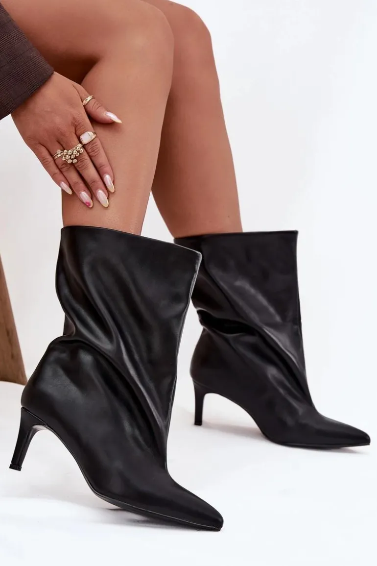 Te wsuwane botki to prawdziwy strzał w dziesiątkę, jeśli szukasz czegoś stylowego i kobiecego! Smukła szpilka dodaje lekkości i subtelnie wydłuża nogi, a luźna cholewka wprowadza odrobinę nonszalancji. Szpiczaste noski dopełniają całości, nadając butom eleganckiego, modnego charakteru – idealne do zarówno casualowych, jak i bardziej wyjściowych looków. Przy wyborze rozmiaru prosimy sugerować się tabelą rozmiarów.