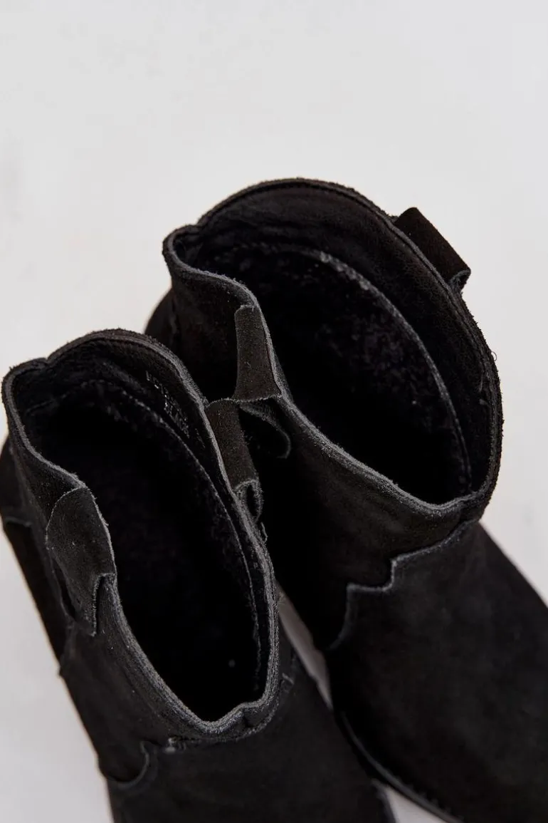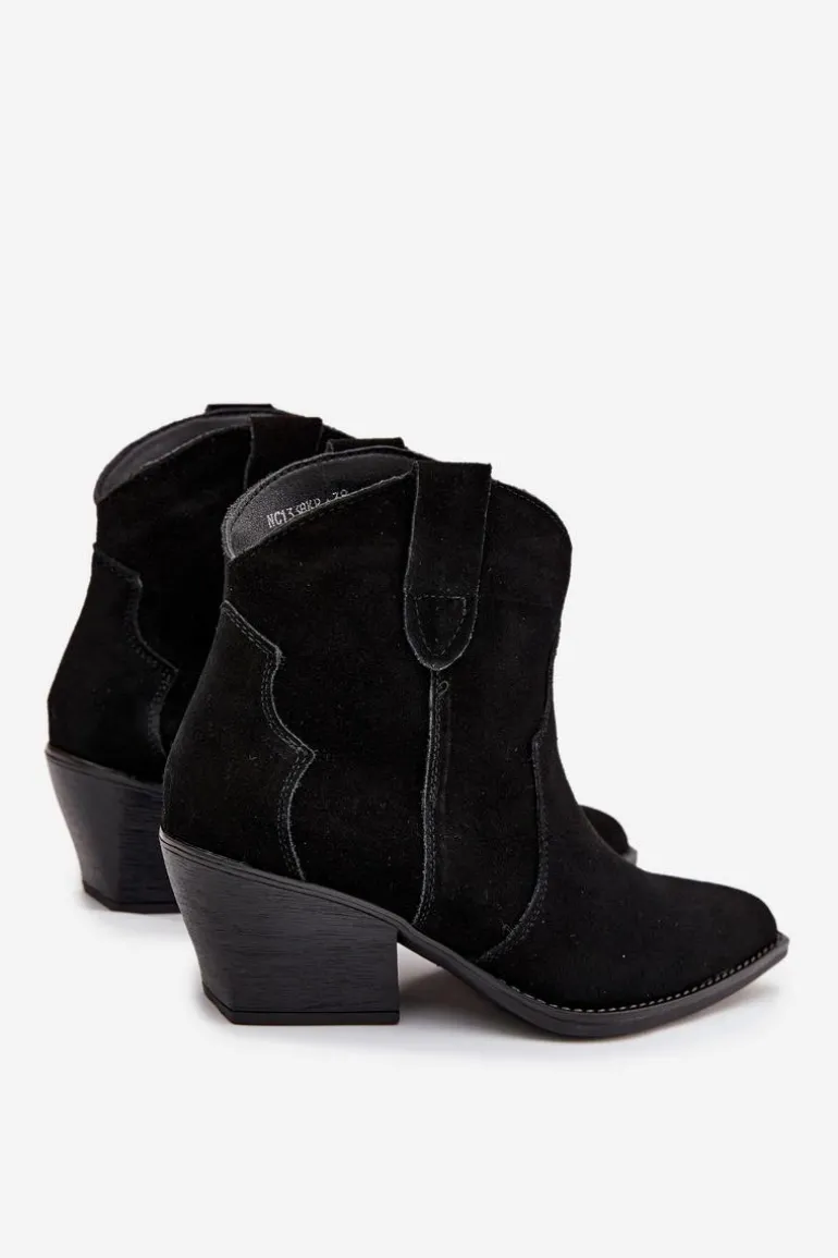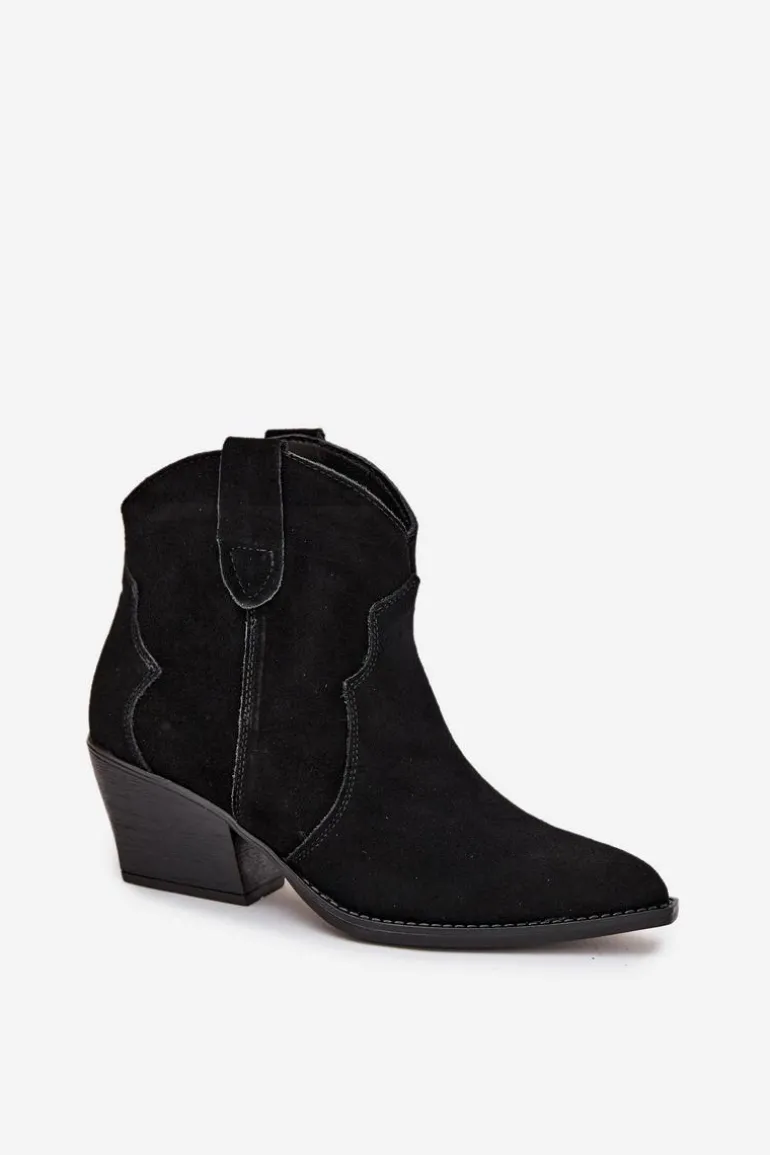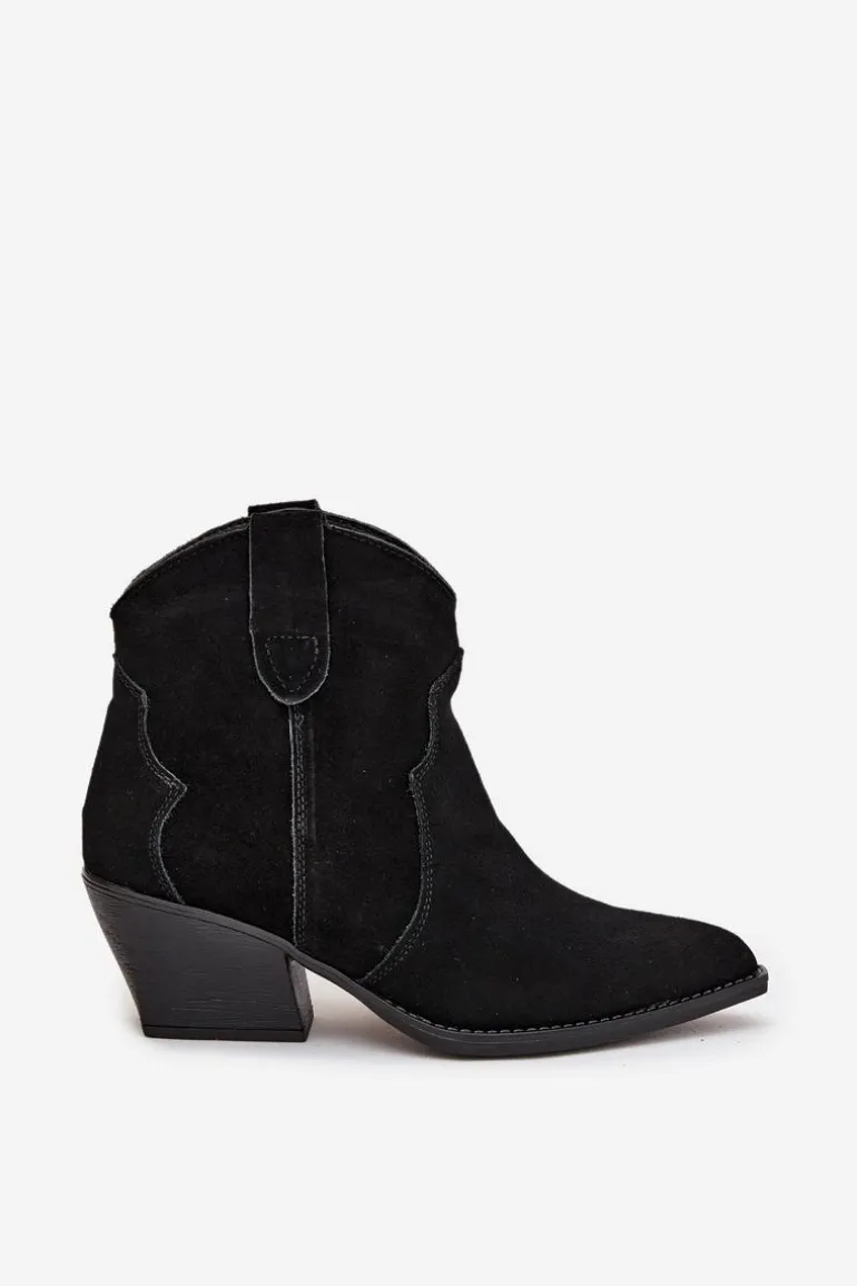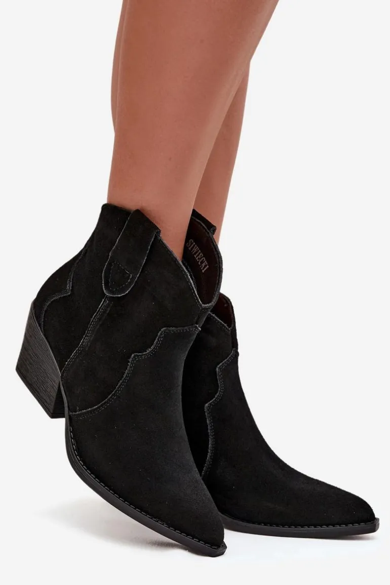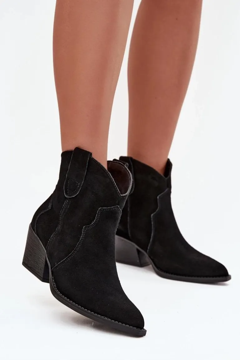 Botki damskie wykonane z naturalnego zamszu to stylowe obuwie w kowbojskim klimacie, które doda charakteru każdej stylizacji. Model wsuwany zapewnia wygodę zakładania, a stabilny, ścięty obcas optycznie wysmukla sylwetkę i nadaje wyjątkowego wyglądu. Szpiczaste noski podkreślają kobiecy styl i nawiązują do klasycznych kowbojek, dzięki czemu botki doskonale komponują się zarówno z jeansami, jak i zwiewnymi sukienkami. Wnętrze ocieplone kocem obuwniczym gwarantuje komfort termiczny w chłodniejsze dni, sprawiając, że model jest nie tylko efektowny, ale i praktyczny. To propozycja dla kobiet ceniących modne detale i wygodę na co dzień – botki sprawdzą się świetnie w jesienno-zimowych stylizacjach, dodając im oryginalnego, westernowego charakteru.