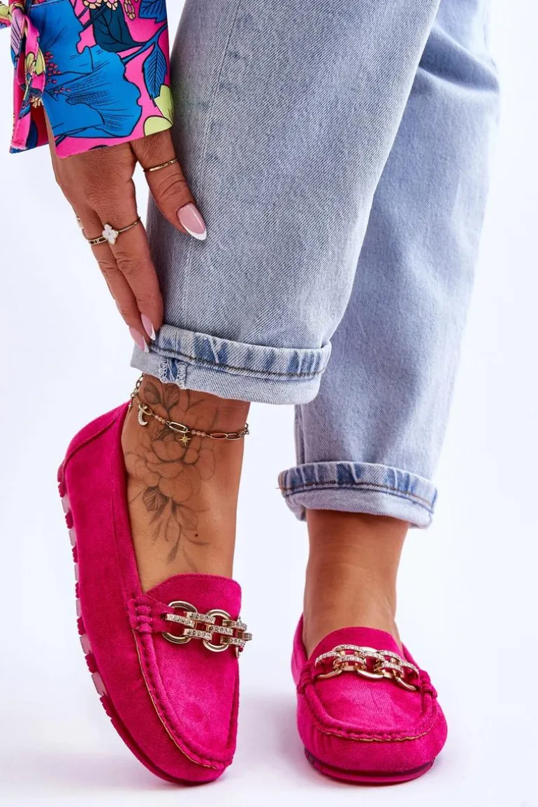 Wsuwane Damskie Zamszowe Mokasyny Fuksja Sorento