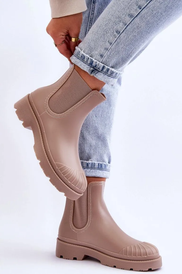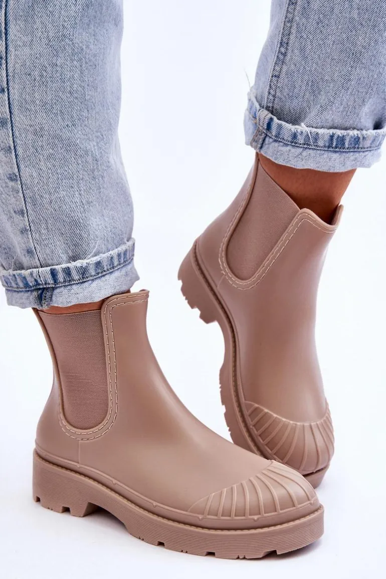 Botki zostały wykonane z gumowego tworzywa. Posiadają zdobienie na nosku. Wewnątrz obuwia wkładka została wykonana z tkaniny. Płaski obcas oraz niska platforma zapewnią stabilność na każdym kroku. Świetny model na sezon wiosenno-jesienny. Koniecznie powinnaś mieć te sztyblety w swojej szafie! Przy wyborze rozmiaru prosimy sugerować się tabelą rozmiarów.
