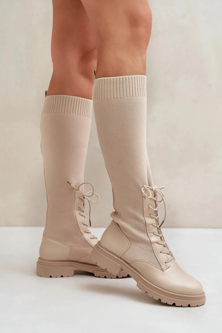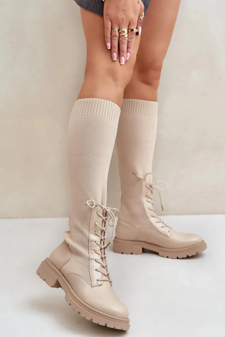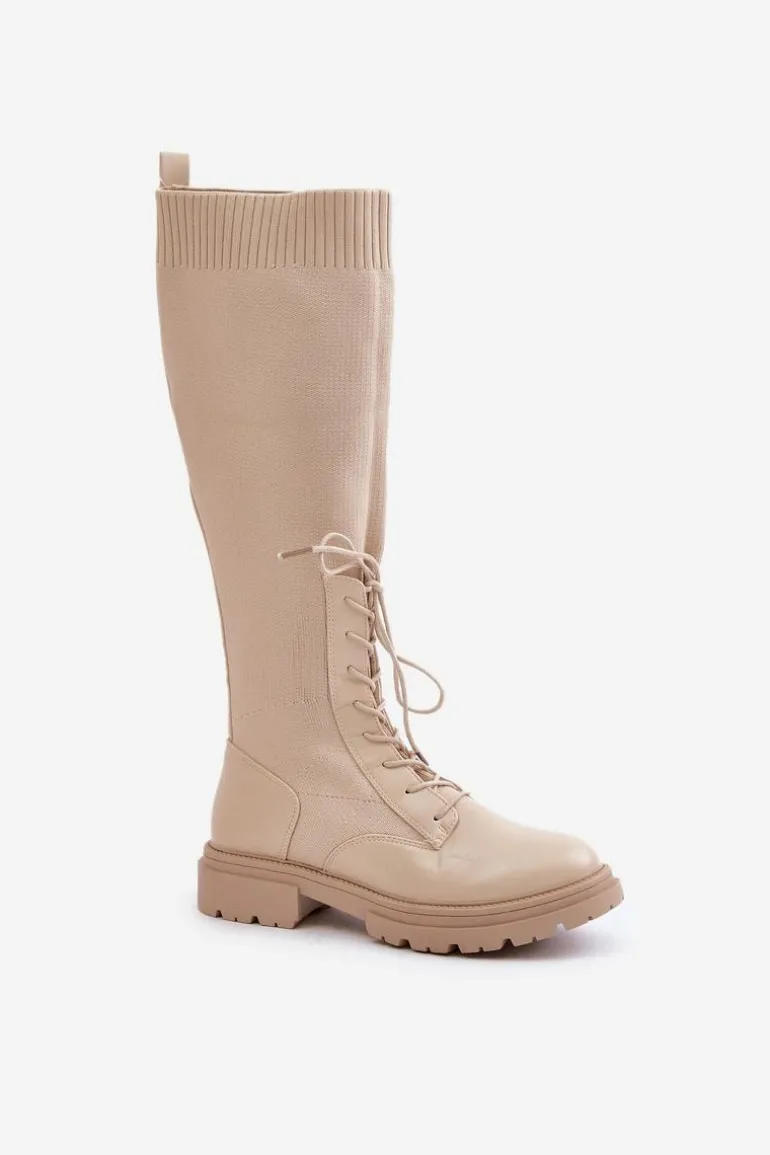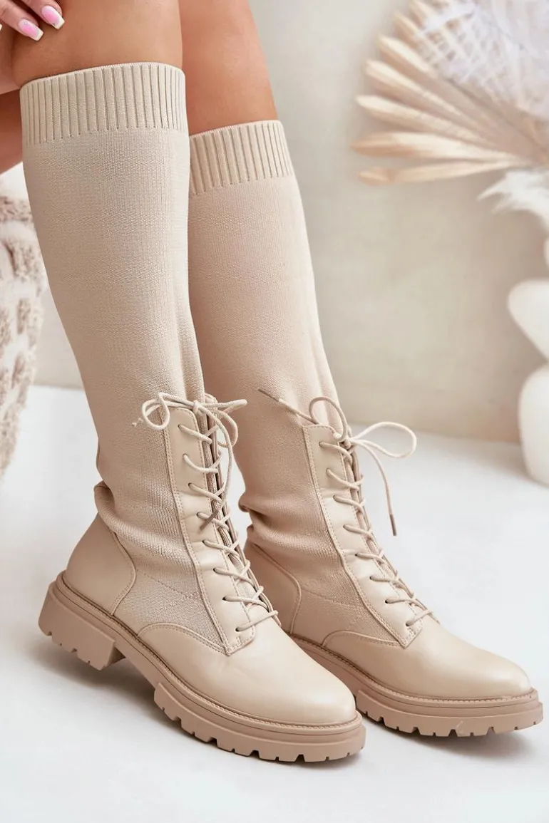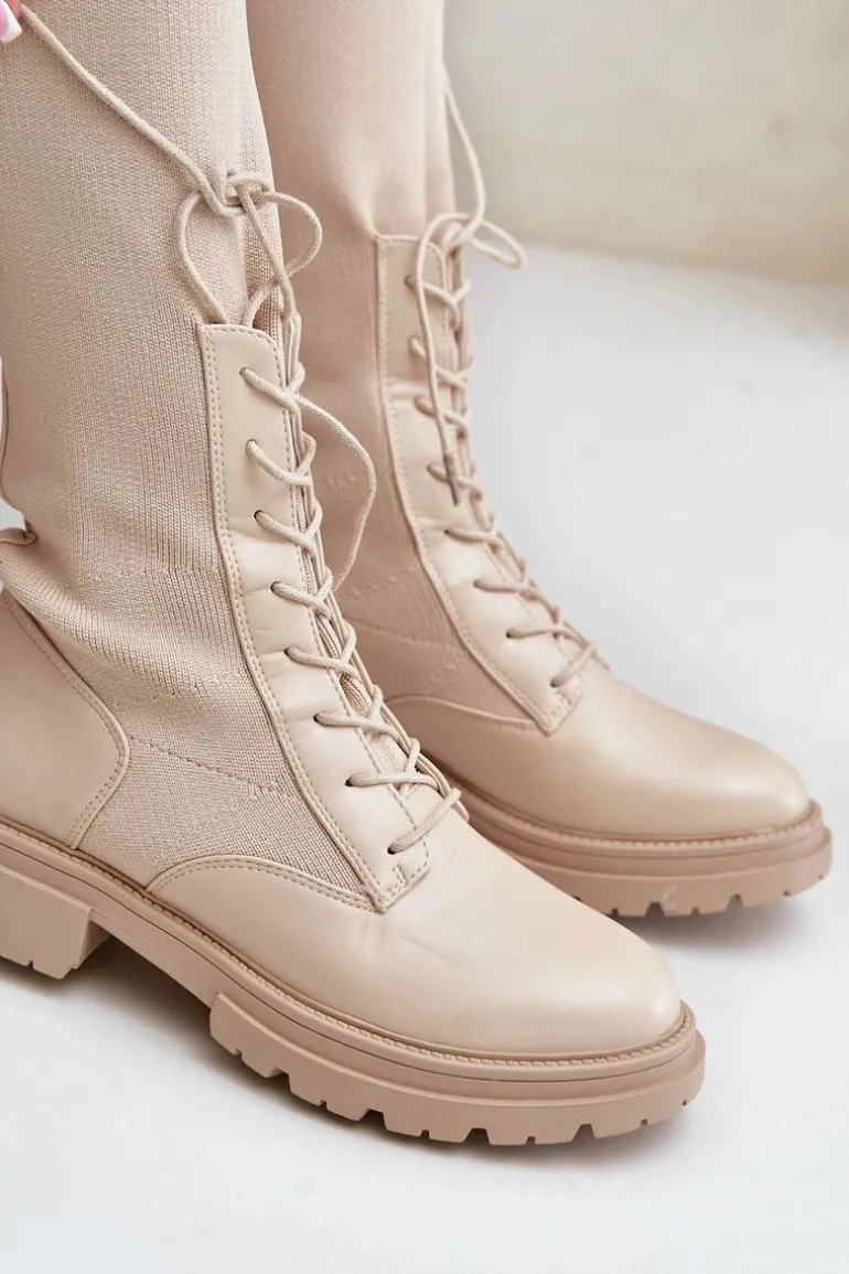 Damskie kozaki wykonane z połączenia ekologicznej skóry i materiału tekstylnego. Model wyróżnia się zaokrąglonymi noskami, które gwarantują komfort noszenia. Wnętrze butów jest ocieplone kocem obuwniczym, ograniczonym do części stopy. Elastyczna cholewka ze sznurowaniem nowoczesny, stylowy charakter. Przy wyborze rozmiaru prosimy kierować tabelą rozmiarów.