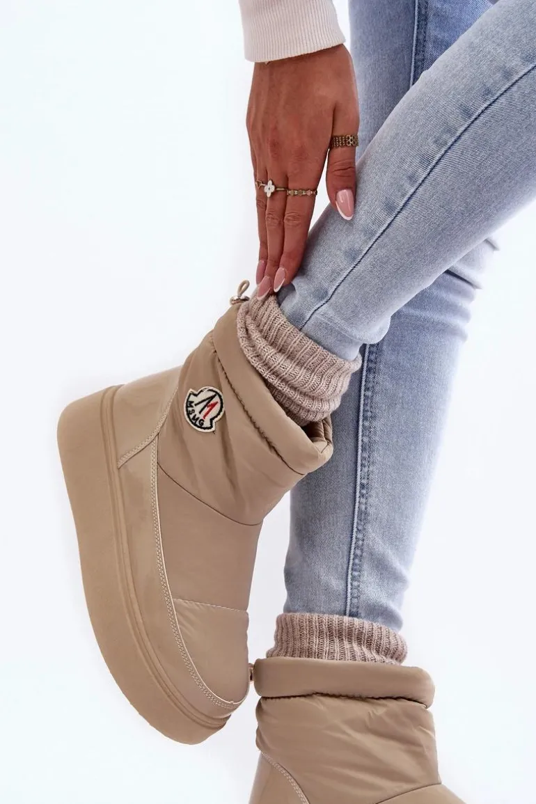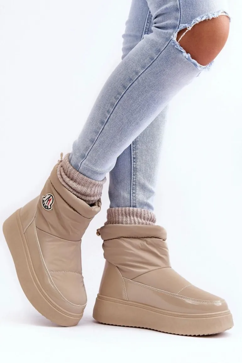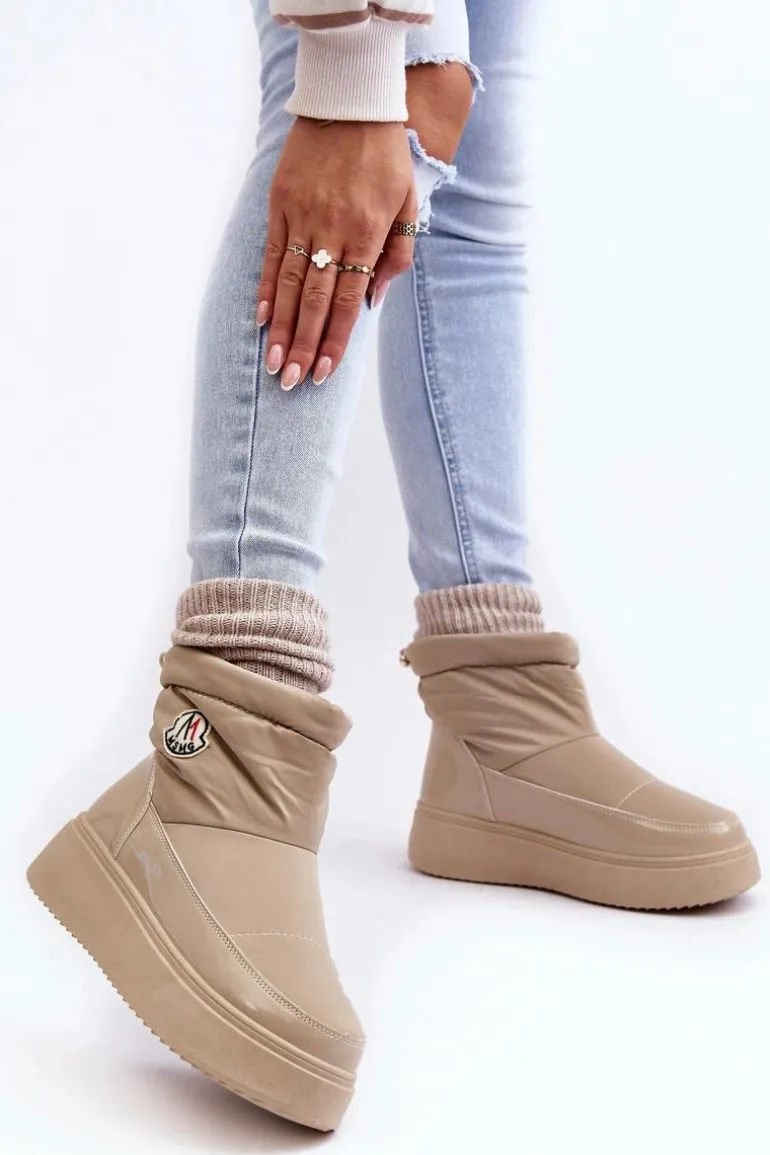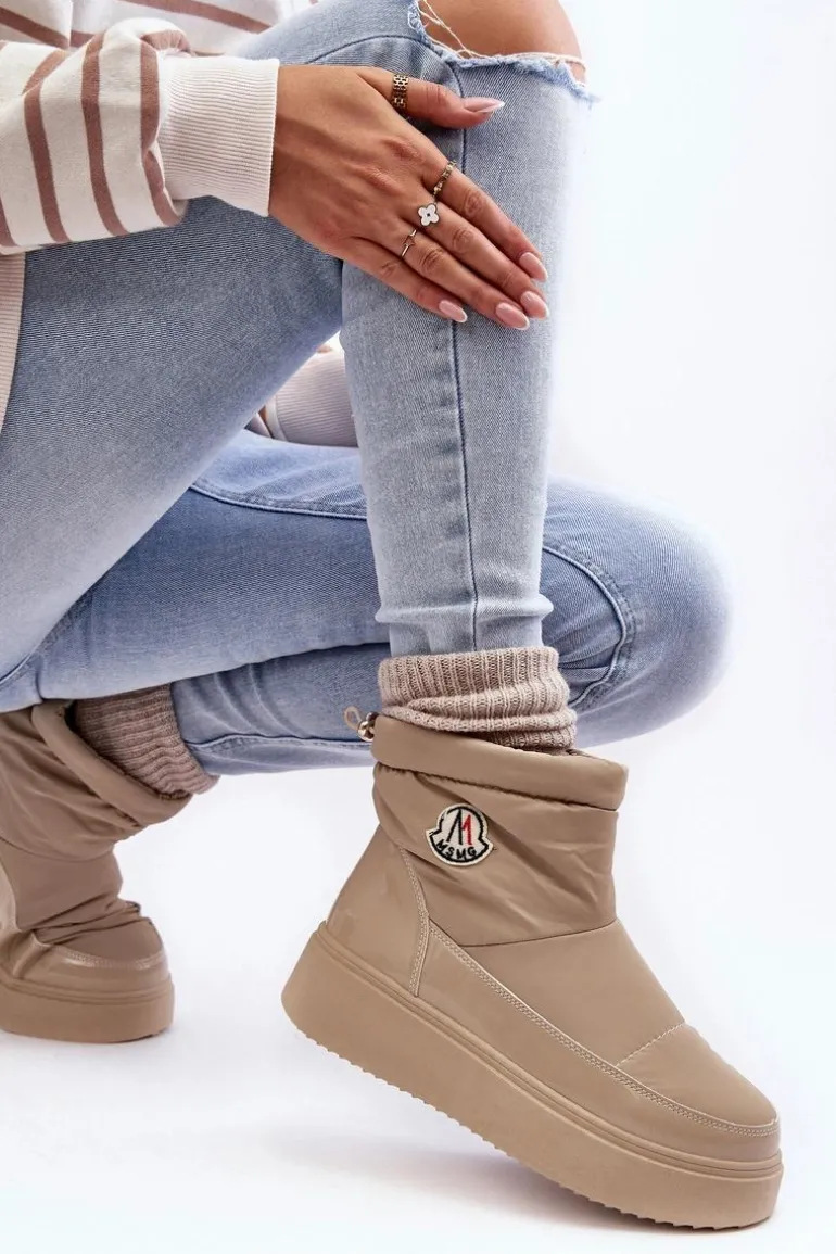 Klasyczne śniegowce damskie wykonane z połączenia materiału tekstylnego i eko skóry. Osadzone na platformie. Wnętrze ocieplone grubym futerkiem. Model wsuwany z cholewką za kostkę. Ściągacz na górze cholewki. Idealne dla osób, które cenią sobie wygodę oraz ciepło w mroźne dni! Po prostu musisz je mieć! Przy wyborze rozmiaru prosimy sugerować się tabelą rozmiarów.