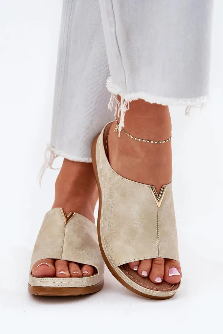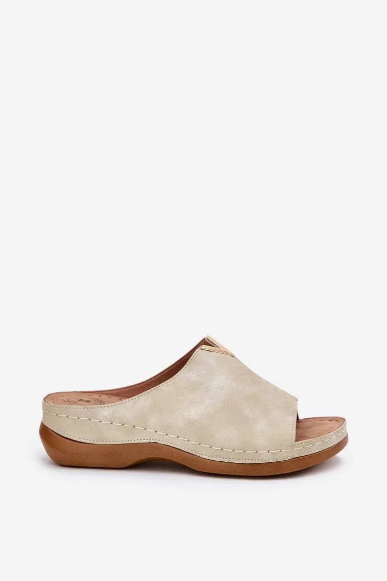 Eleganckie damskie klapki wykonane z eko skóry to połączenie stylu i komfortu. Osadzone na koturnie, zapewniają lekkość oraz stabilność przez cały dzień. Model ten posiada miękką wkładkę Comfortshoe z efektem poduszki, co gwarantuje wygodę nawet przy długotrwałym noszeniu. Te klapki doskonale komponują się z codziennymi stylizacjami, łącząc elegancję z funkcjonalnością. Idealne na ciepłe dni! Przy wyborze rozmiaru prosimy sugerować się tabelą rozmiarów.