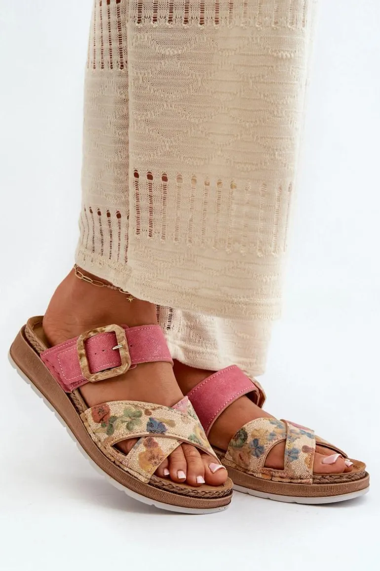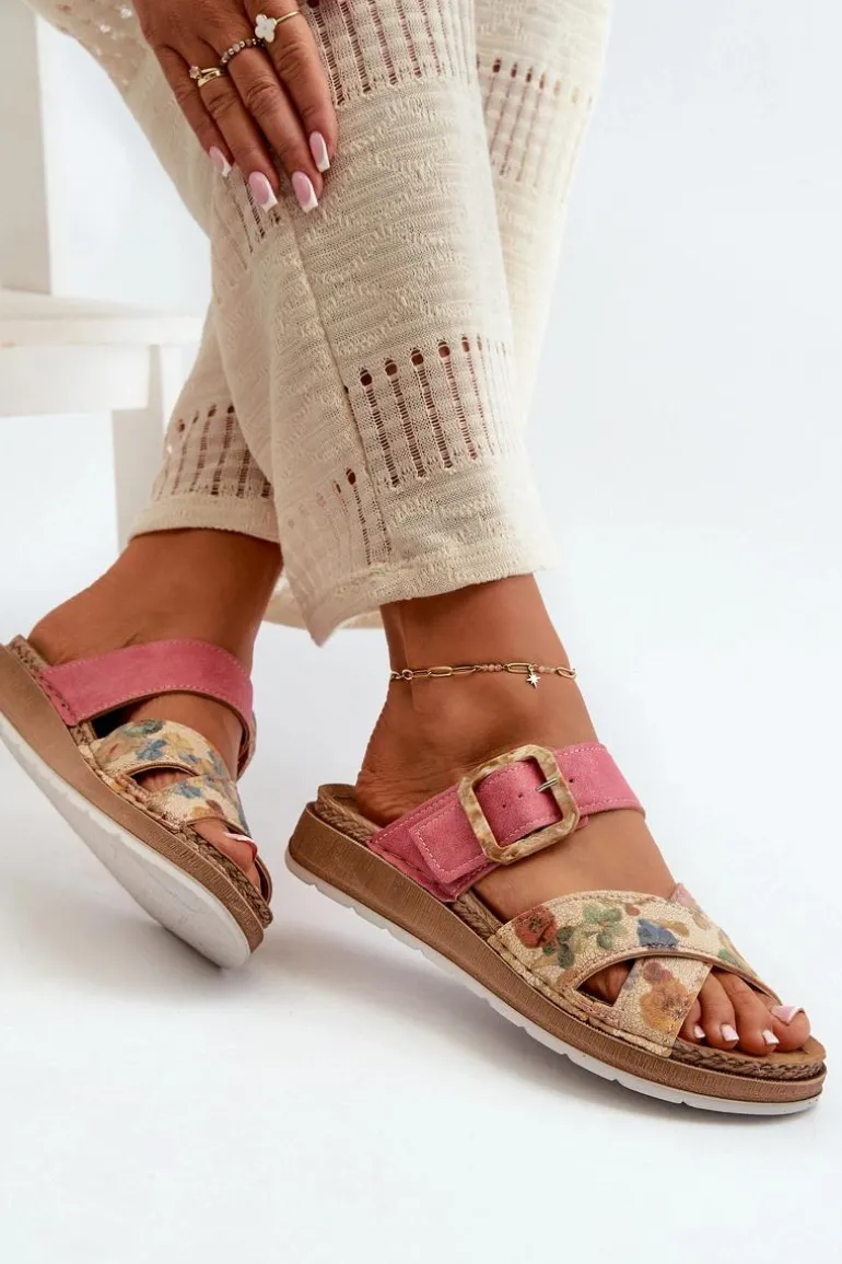 Lekkie klapki damskie od marki Inblu. Model ten posiada dwa wzorzyste paski oraz jeden regulowany z klamrą. Profilowana wkładka dopasowana do anatomicznego kształtu stopy. Lekki, dwuwarstwowy spód z elastycznego tworzywa zapewnia sprężystość i doskonałe przenoszenie obciążeń, co gwarantuje wygodę noszenia. Przy wyborze rozmiaru prosimy sugerować się tabelą rozmiarów.