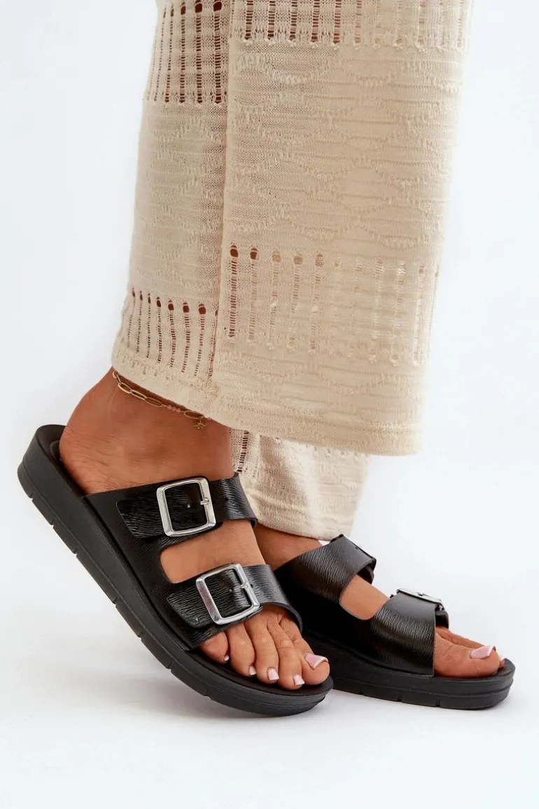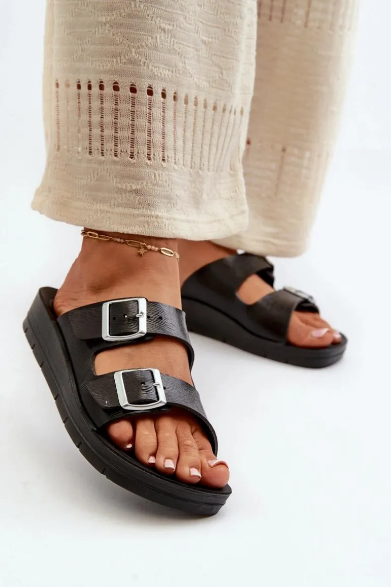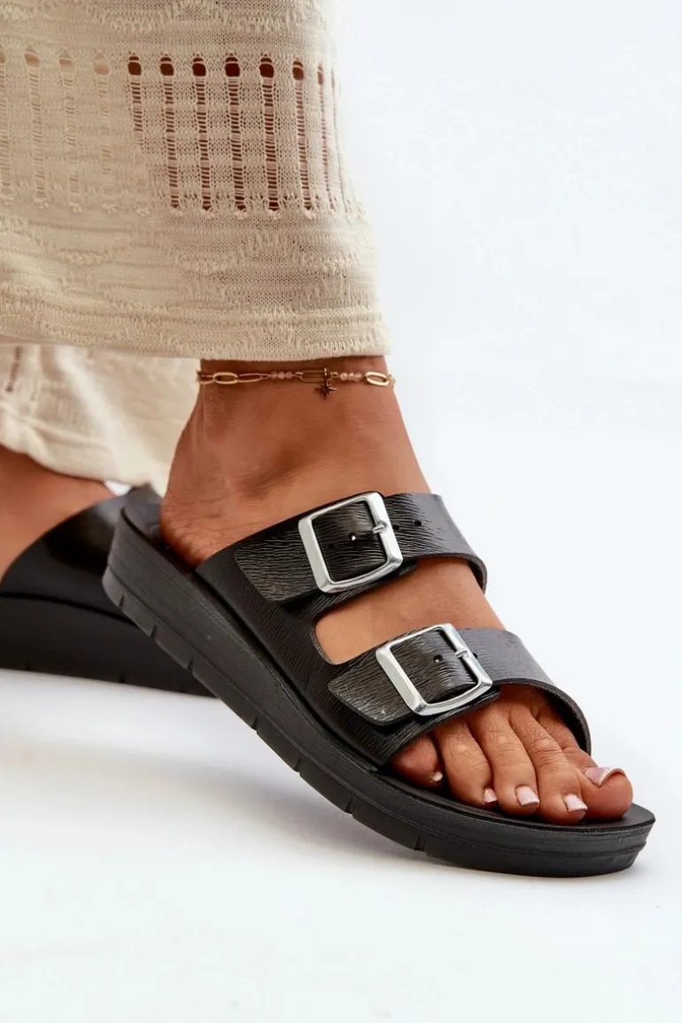 Wygodne Klapki Damskie Z Klamrami Inblu CP000034 Czarne